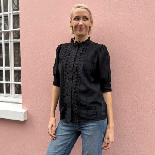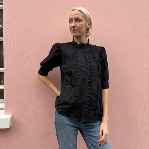 Vanessa Bruno Arseneneo Lace Black Puff Sleeve Shirt