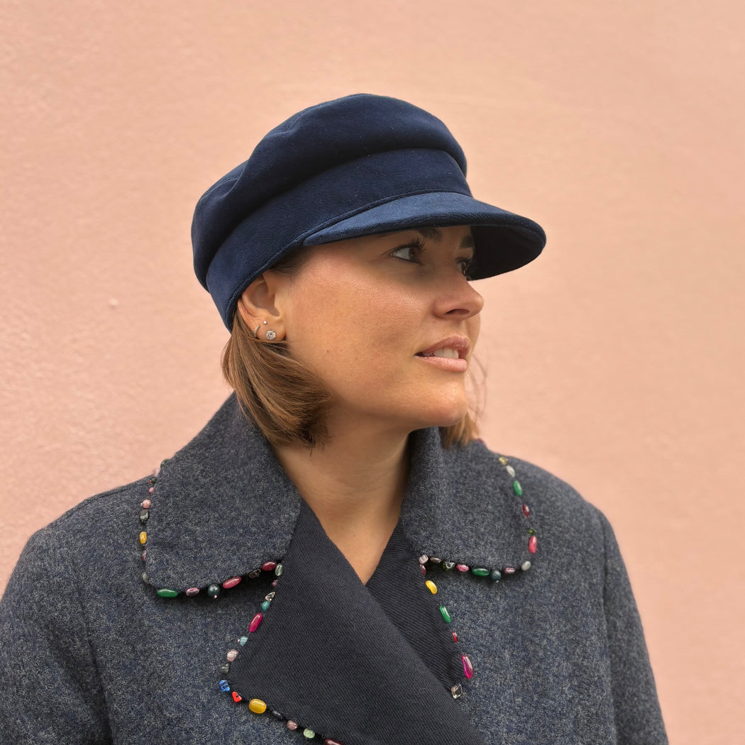 Based on the style of the iconic sailor’s cap this is a signature style for master milliner Anthony Peto. We adore this "bakerboy" or "newsboy" hat... In the softest wool and lined in breathable cotton, this is a fabulous trans-seasonal piece.