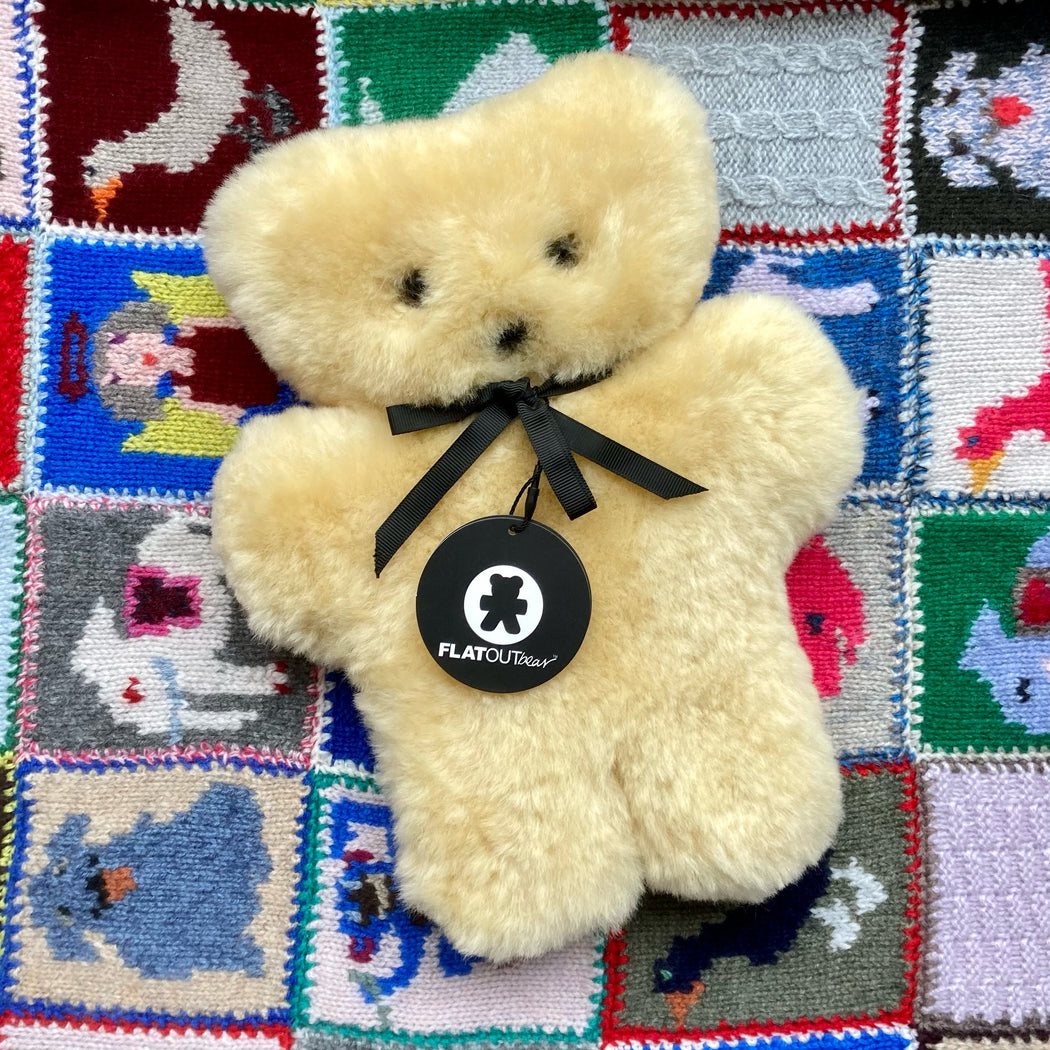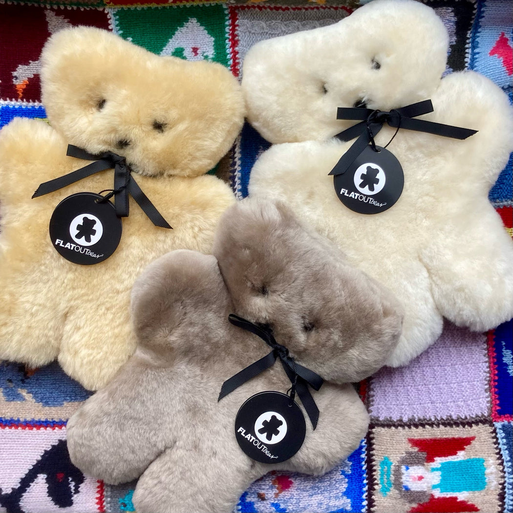 These adorable FLATOUT sheepskin bears from Australia are made from 100% natural sheepskin. This unique flat teddy bear is the perfect luxury gift and comforter for both baby & toddler.