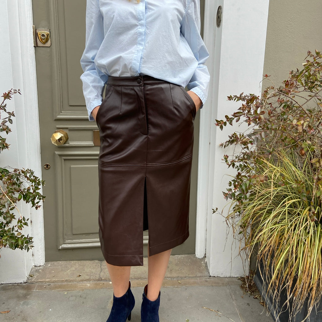 Bellerose Judie Cocoa Faux Leather Skirt
