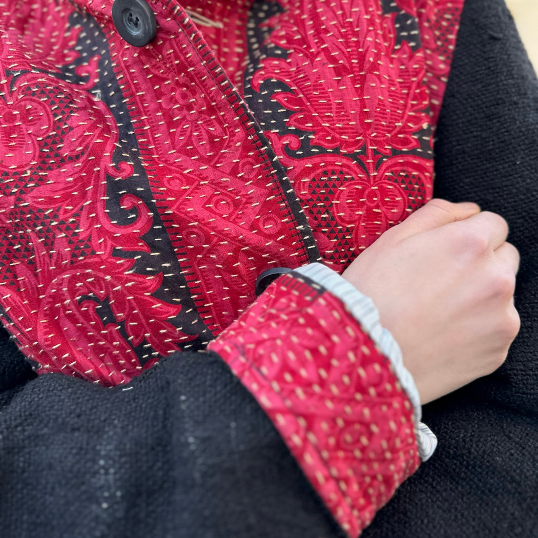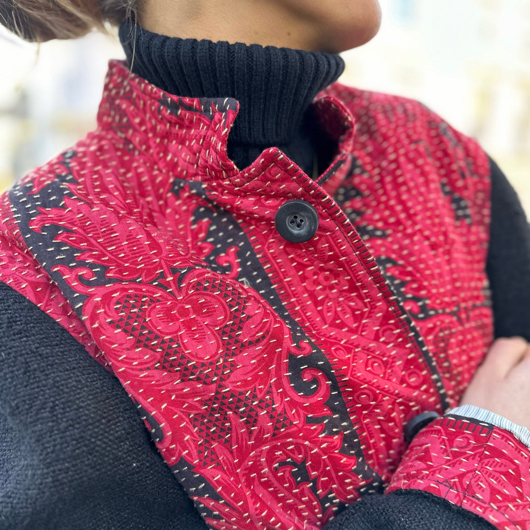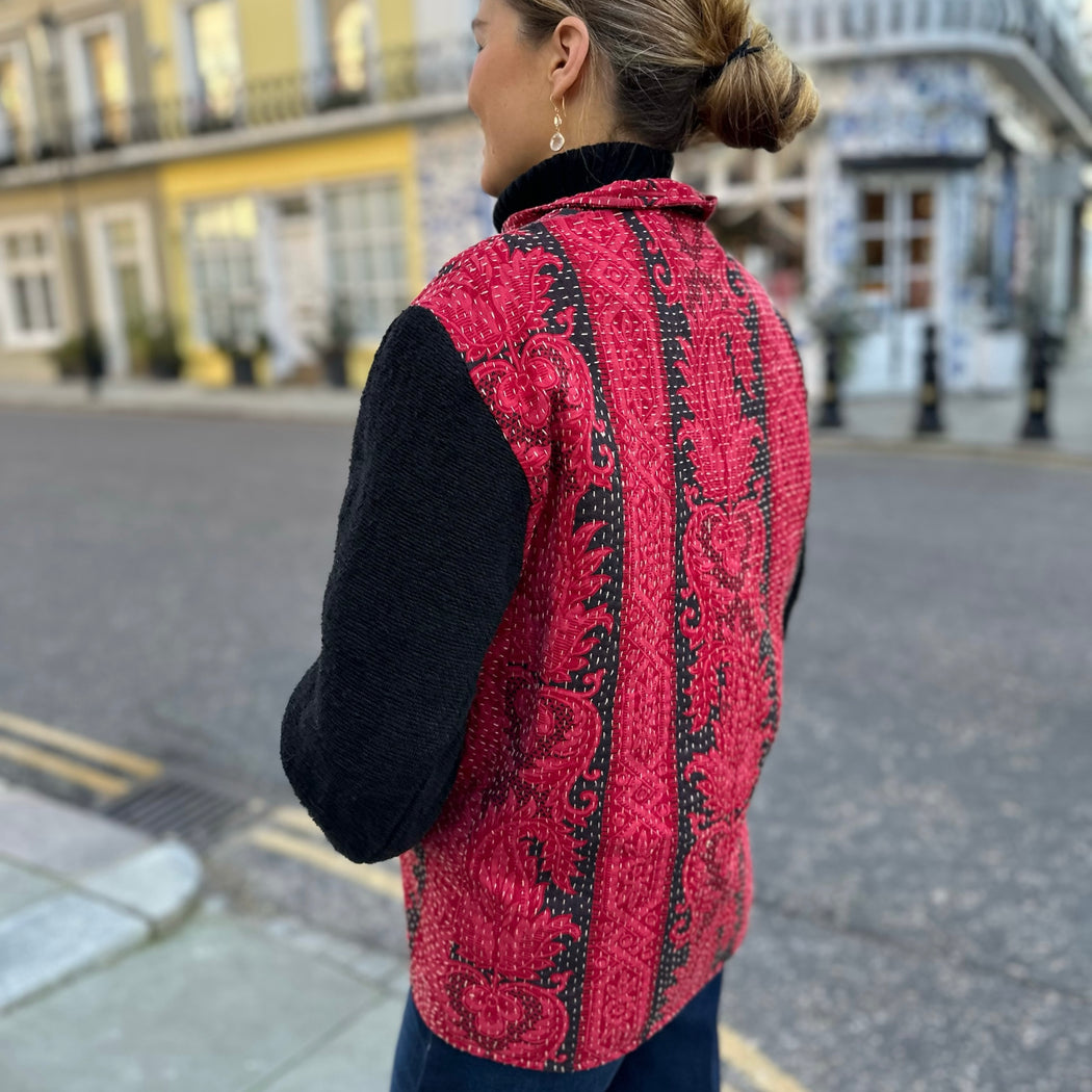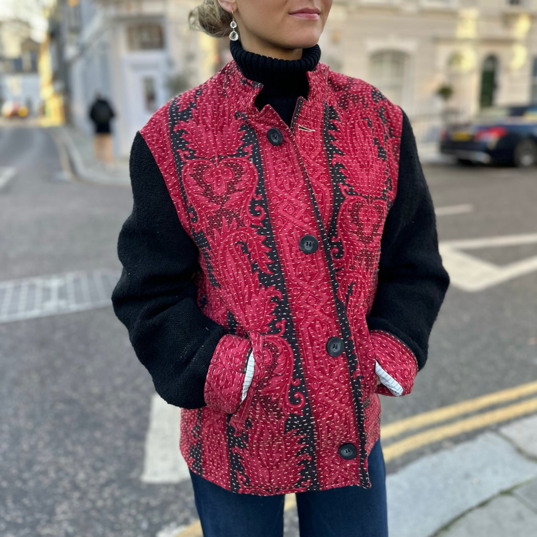 By Walid Depp Red and Black Fleur de Lis French Chateau Jacket