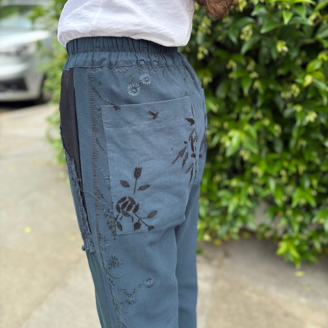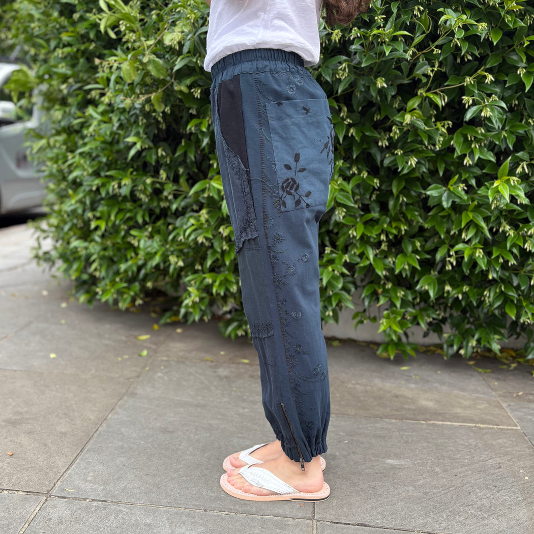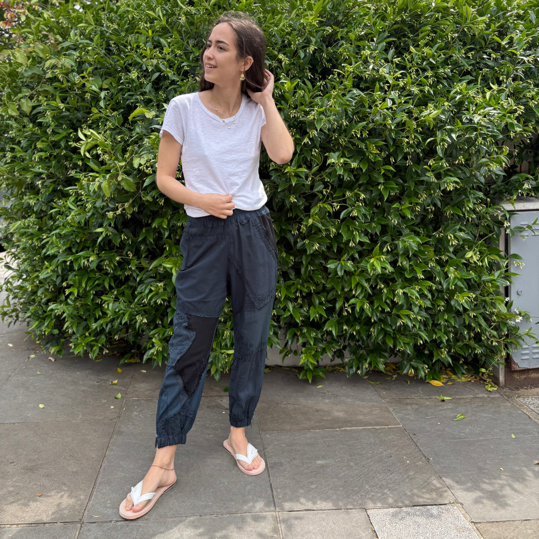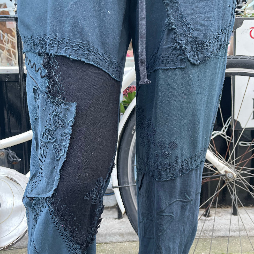 By Walid Hanky Dark Patchwork Indigo Joggers