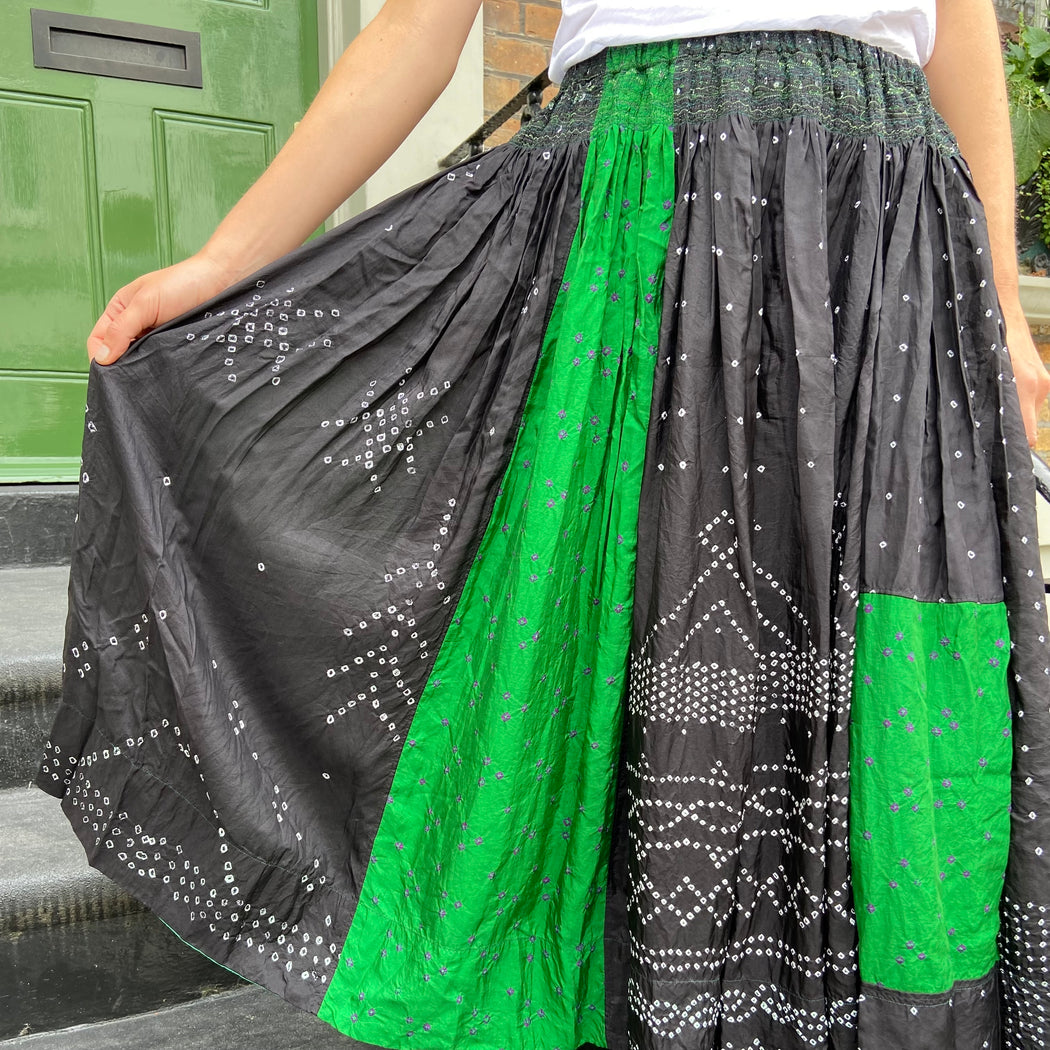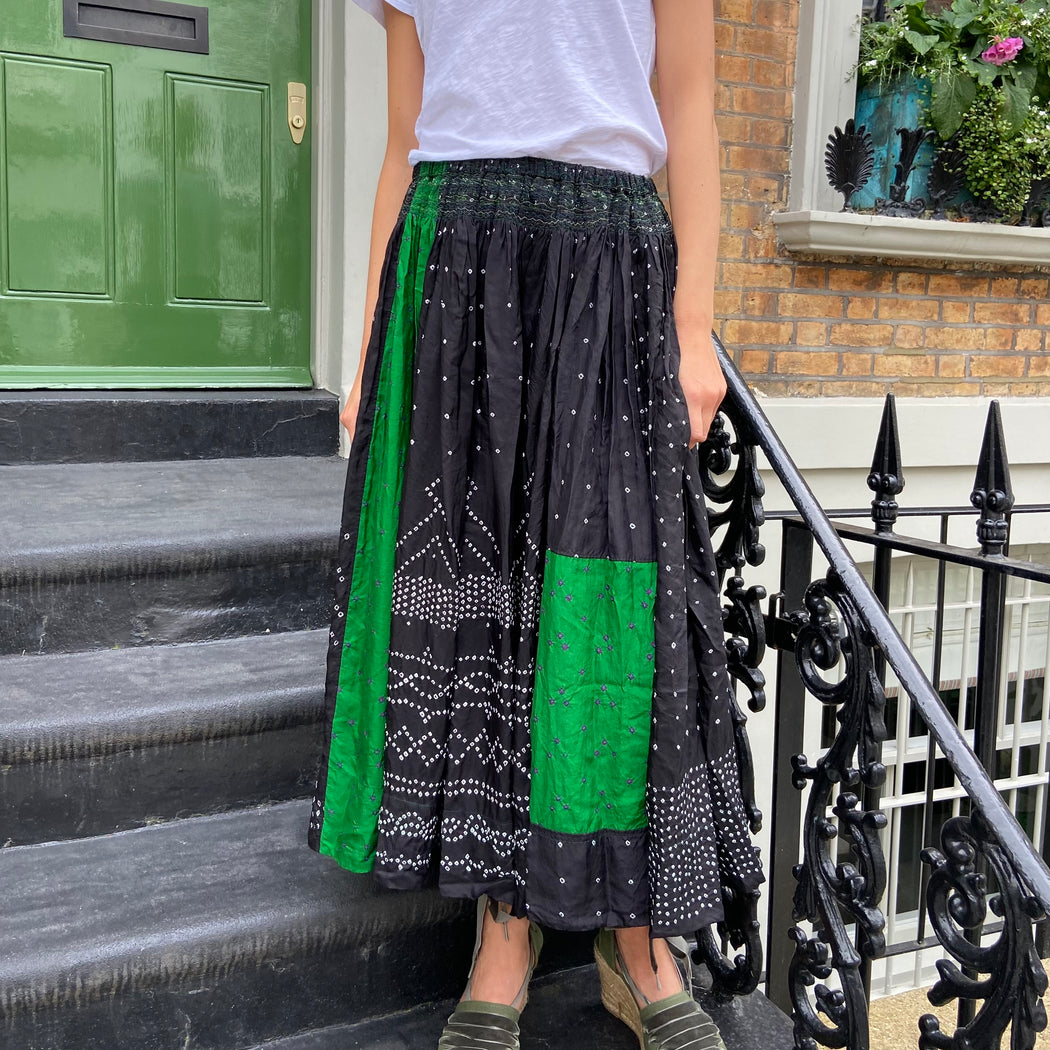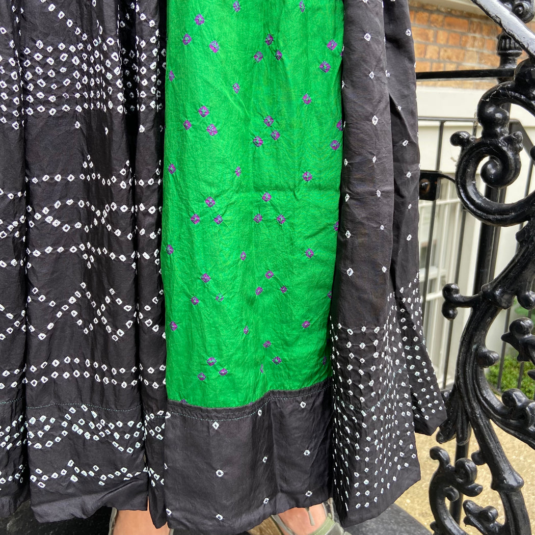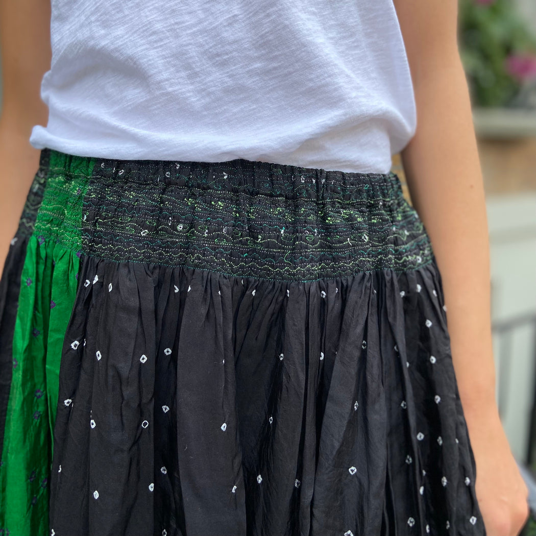 Injiri Black and Green Mini Shibori Silk Skirt