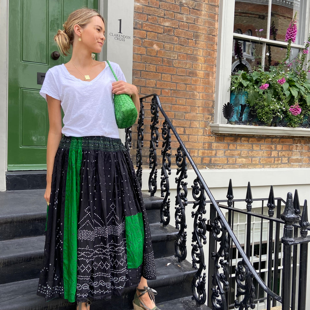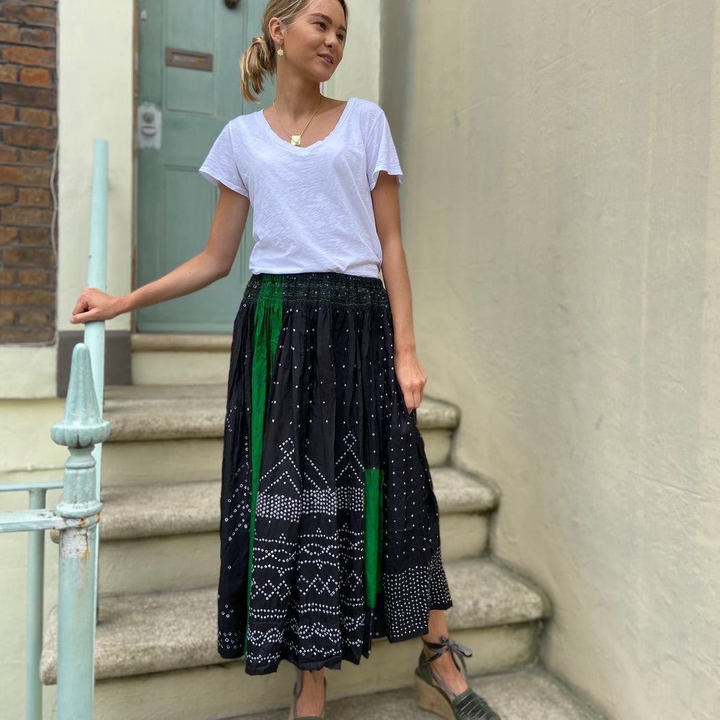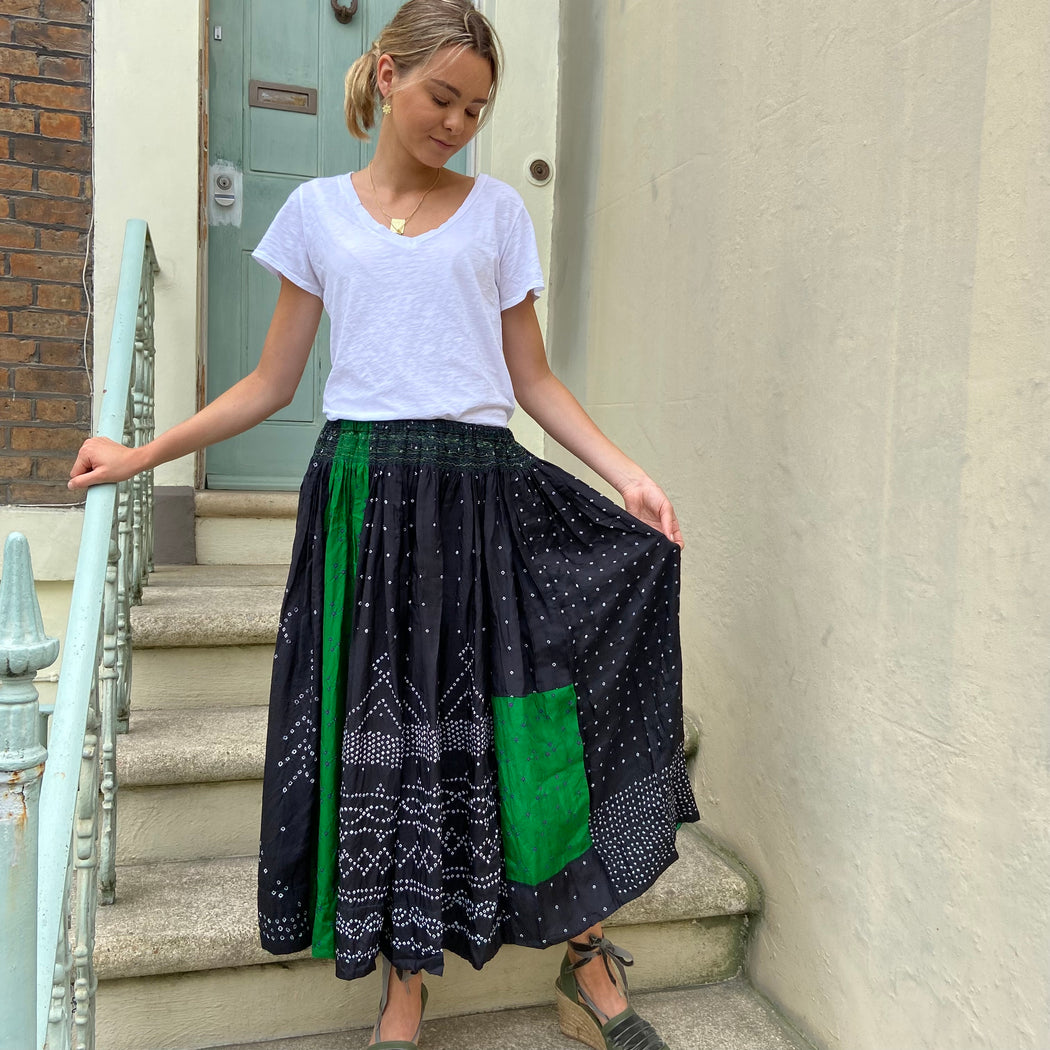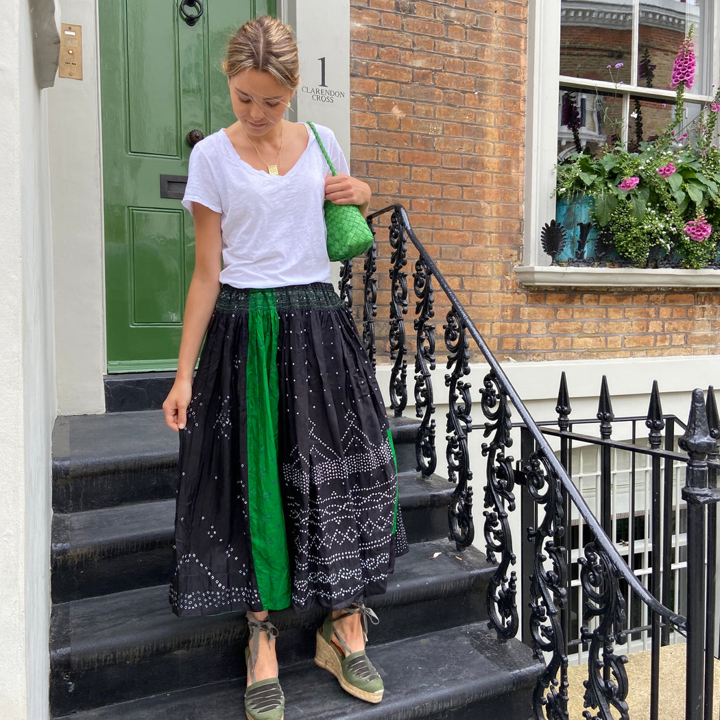Injiri Black and Green Mini Shibori Silk Skirt