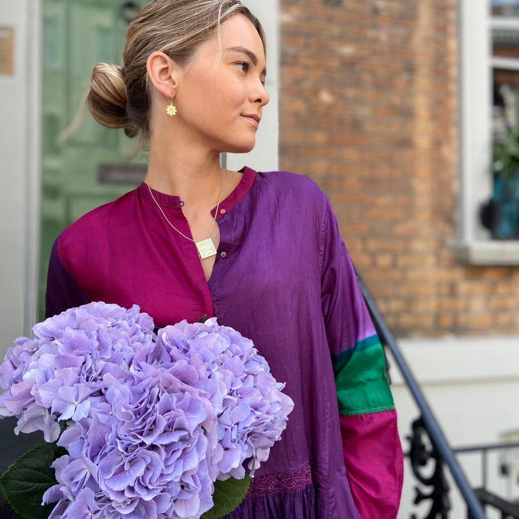 Injiri Purple Patchwork Silk Dyed Dress