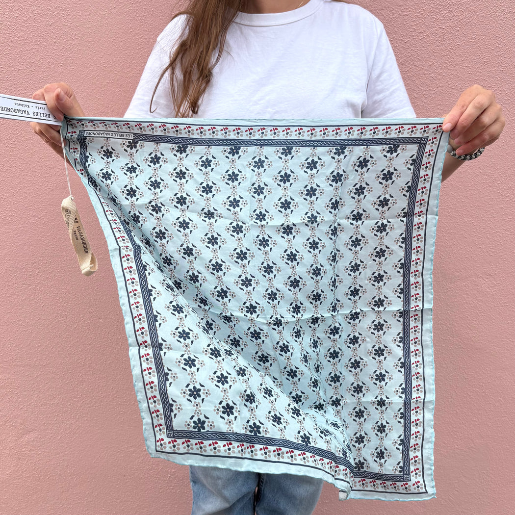 Les Belles Vagabonds Natasha Bleu Silk Square Scarf