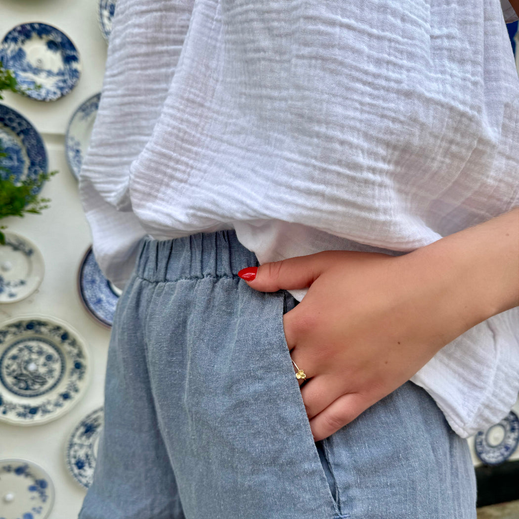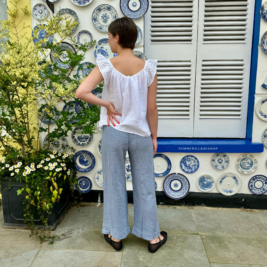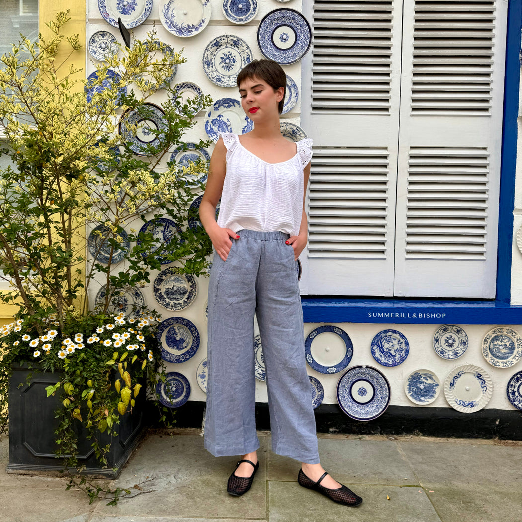 Linen is a fabulous fabric for summer! Lightweight, cool and stylish its perfect for any occasion. These straight leg trousers are slightly cropped above the ankle with an elasticated waist for a comfortable wear and slash pockets for practicality.