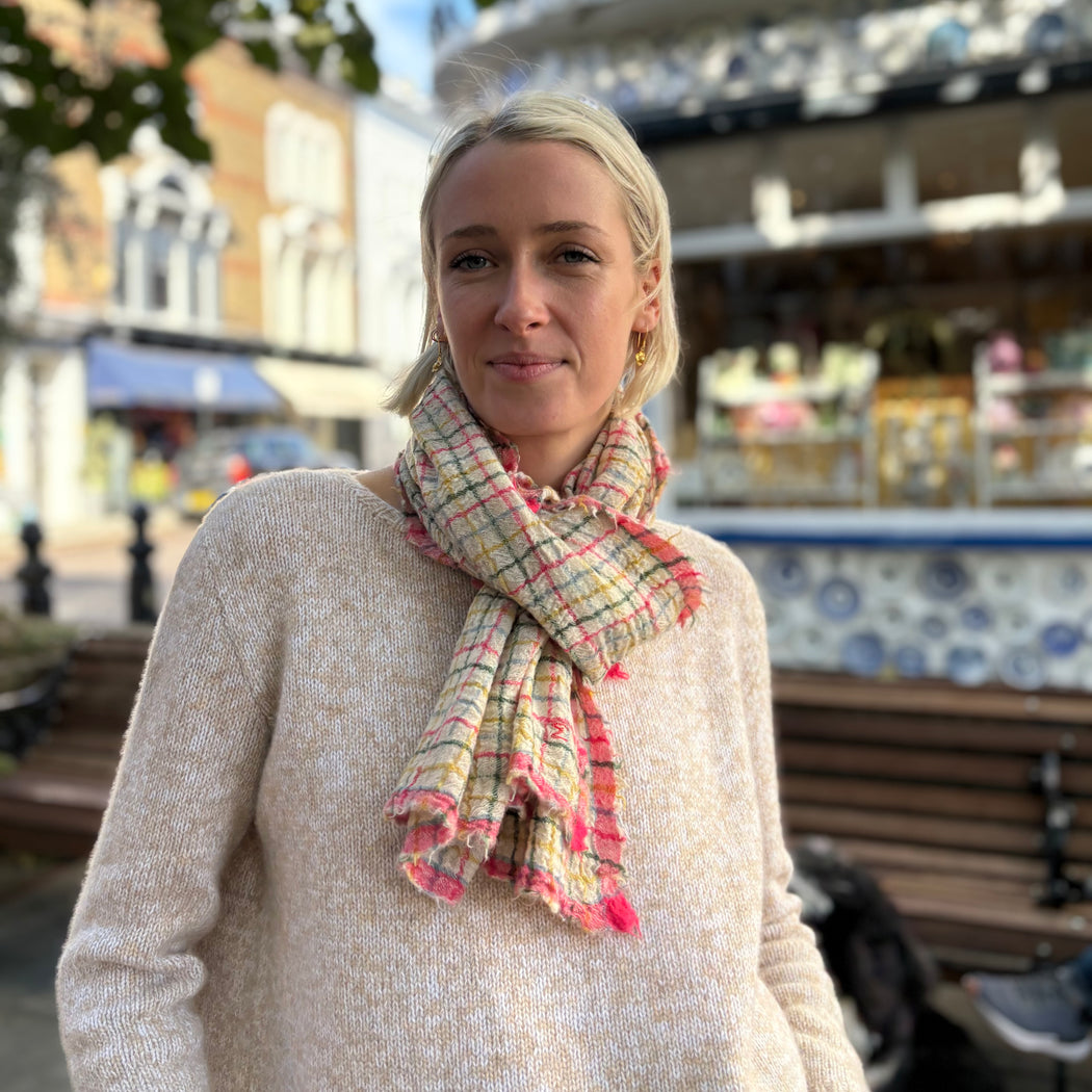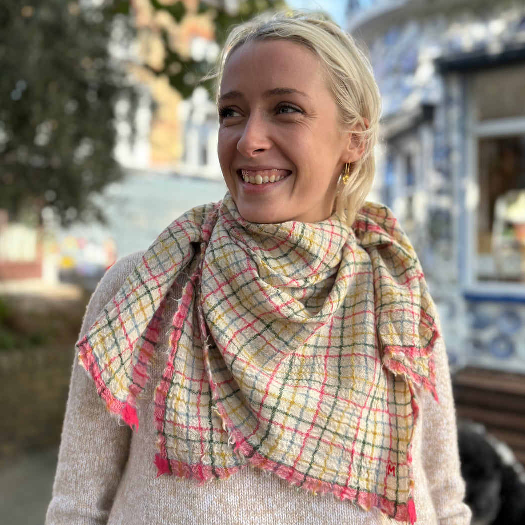 Handwoven in India from a precious blend of cashmere and wool, this scarf combines the natural warmth of wool with the enveloping softness of cashmere. Its small check pattern embodies a style that is both classic and modern, reflecting Moismont's craftsmanship and contemporary aesthetic.