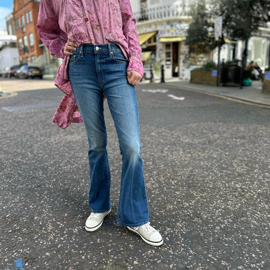 These Mother Weekender Jeans are one of Mothers signature shapes. Fitted and slightly flared, made in a stretch denim to flatter all. The rich burgundy colour is a great and versatile alternative to your classic blue denim.