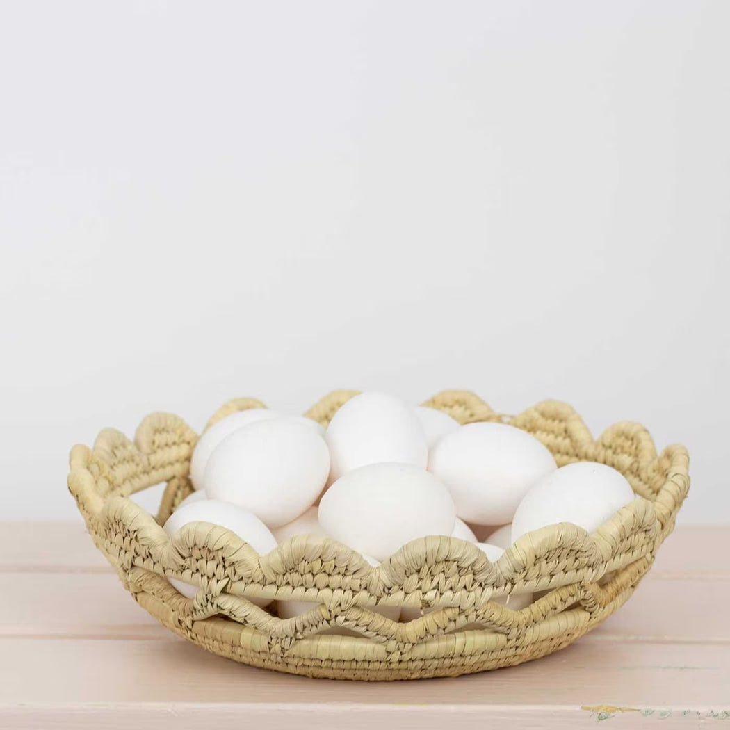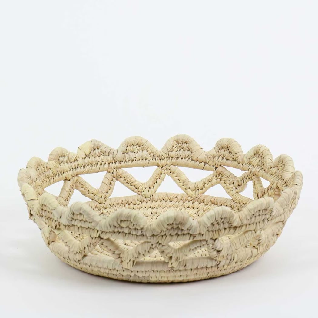 This is a nicely decorated bread basket and part of the series Palm, which are woven by hand by women in rural Bangladesh.