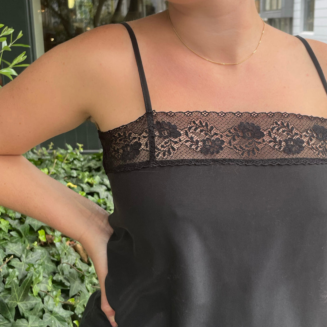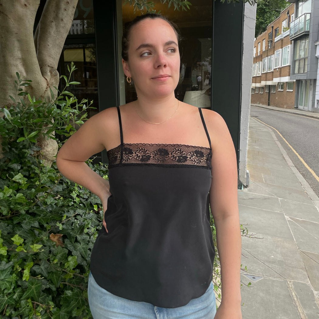 A beautifully light camisole top, perfect for everyday luxury. Proudly the charming lace trim is UK made. The Mima camisole will suit all figures. Beautiful sheer 100% silk Crepe de chine for ultimate luxurious comfort.