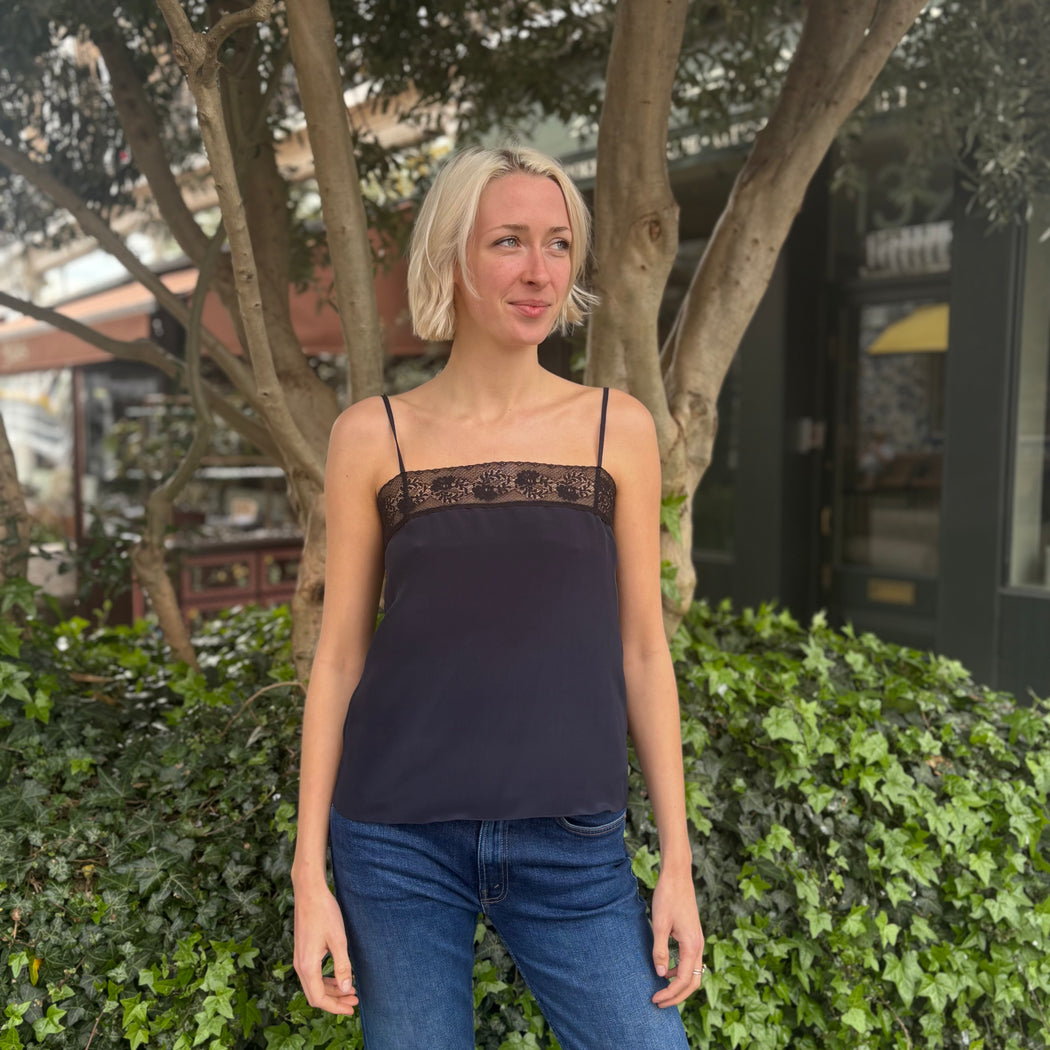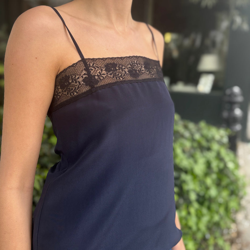 Parasol Rose Mima Navy with Black Lace Silk Camisole