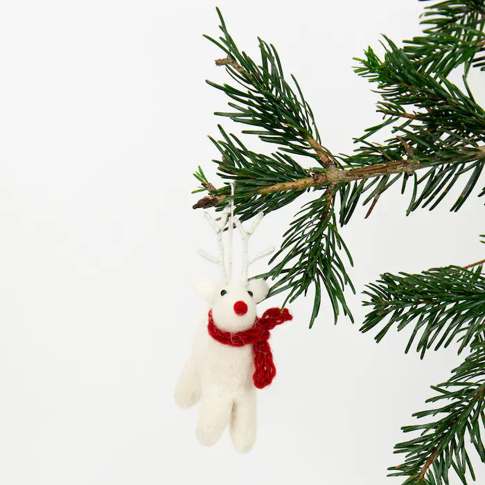 This lovely Christmas deer is made from hand felted wool. It comes with a cotton string loop to hang on a Christmas tree or attach to a present.