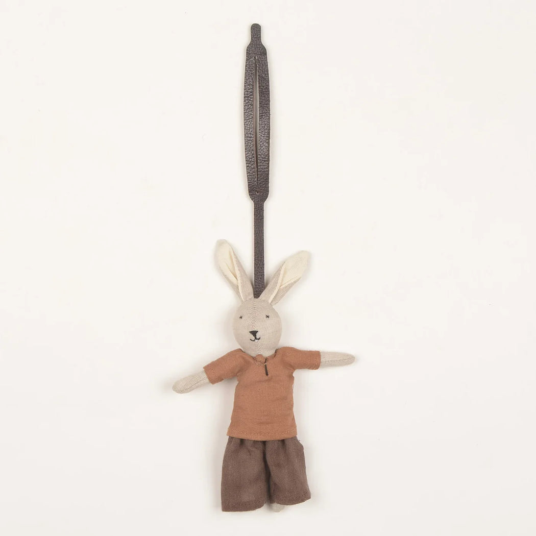 Meet Uji the Rabbit, a playful yet elegant companion handcrafted by Afghan refugee artisans in New Delhi. Dressed in soft earthy hues, Uji brings a touch of warmth and character to your everyday, whether adorning your tote, travel bag, or keys.