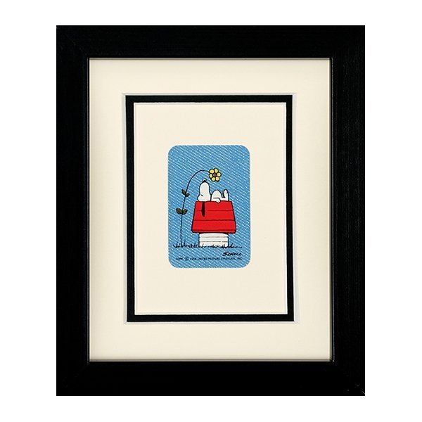 Snoopy On House With Flower Blue Card Framed