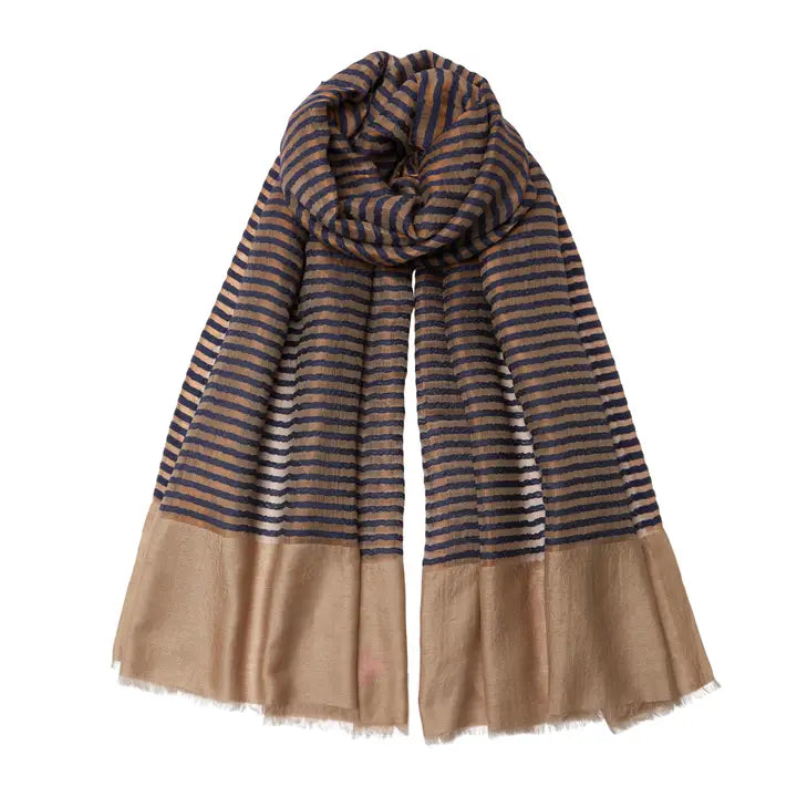 Somerville Lurex Stripe Navy and Gold Pashmina
