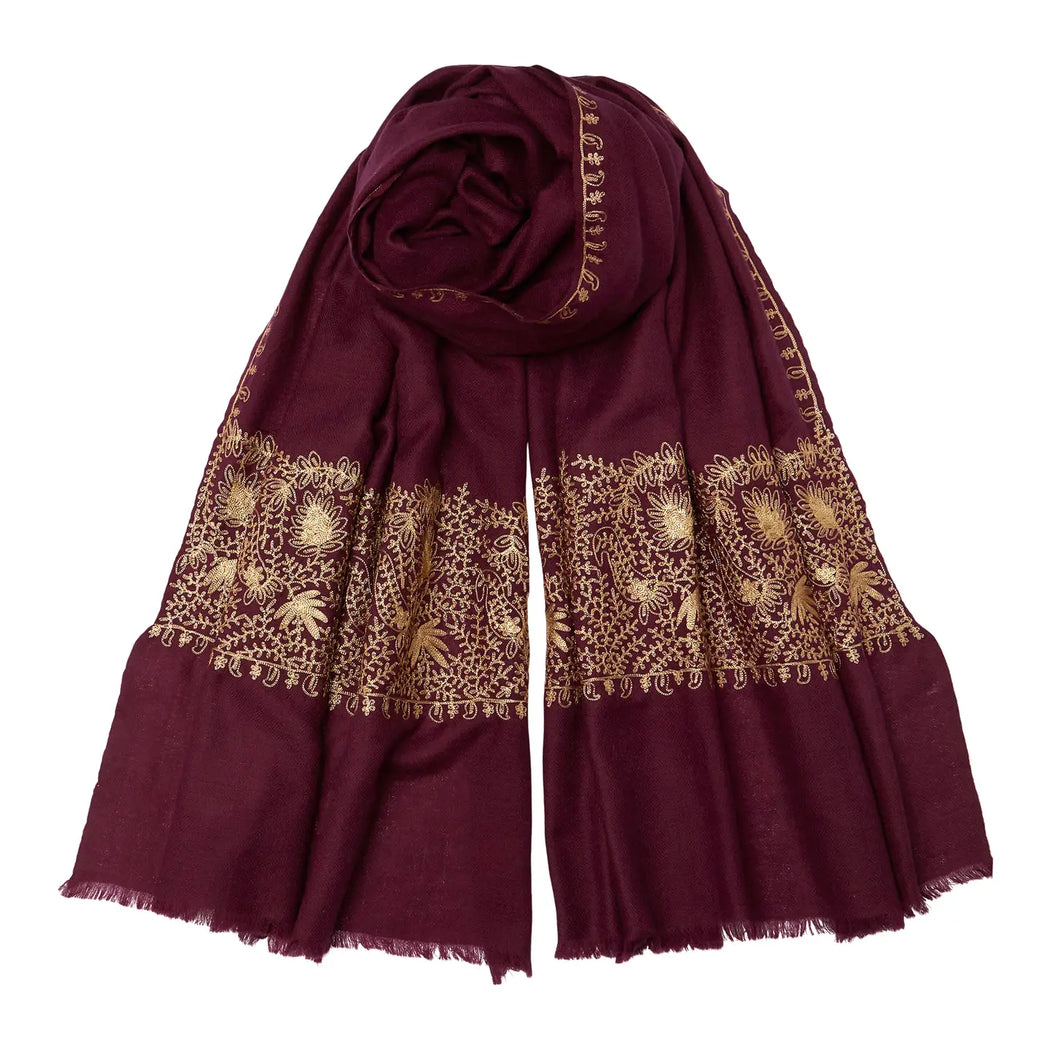 Somerville Zari Border Claret and Gold Pashmina