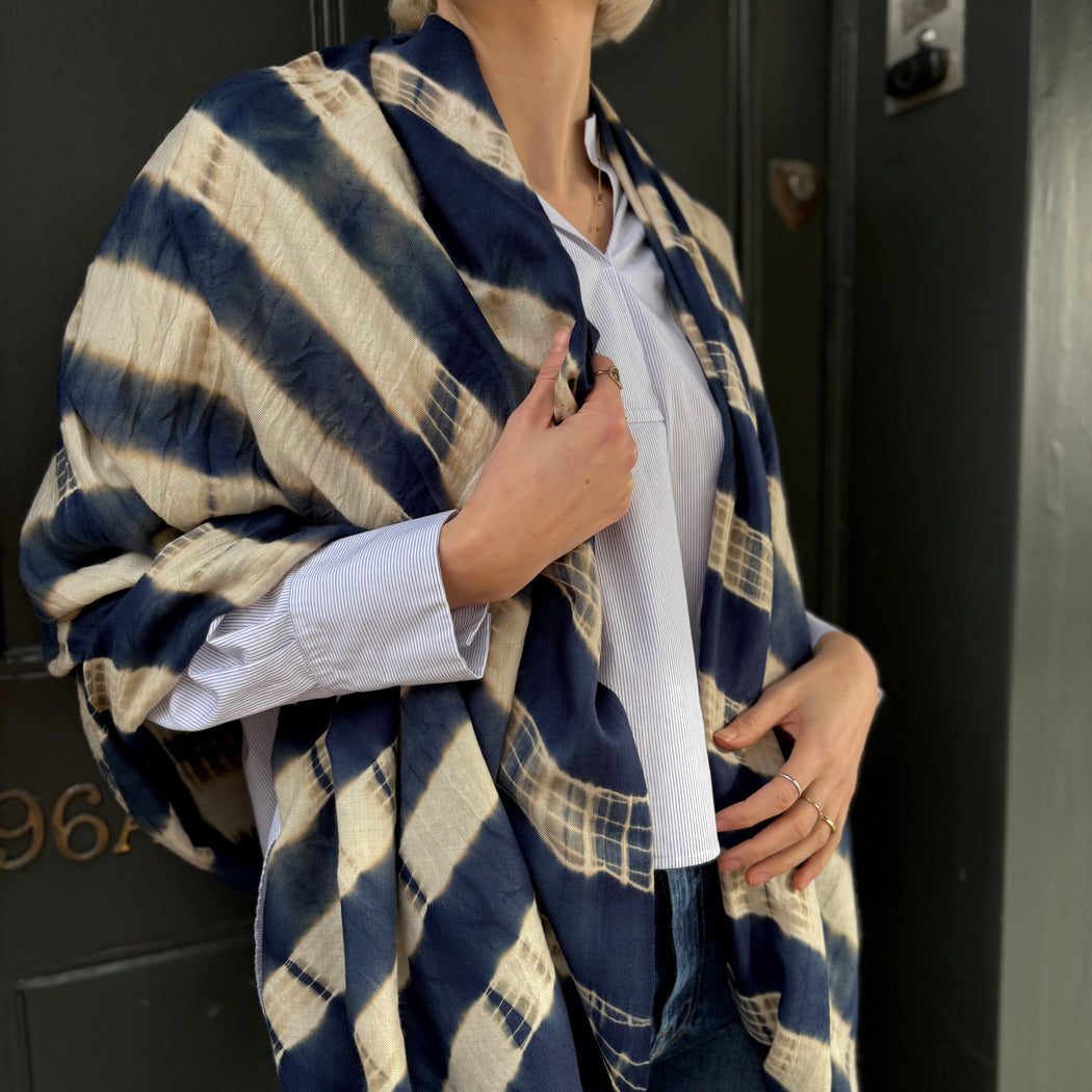 Yaser Shaw Navy Stripe Tie Dye Shawl