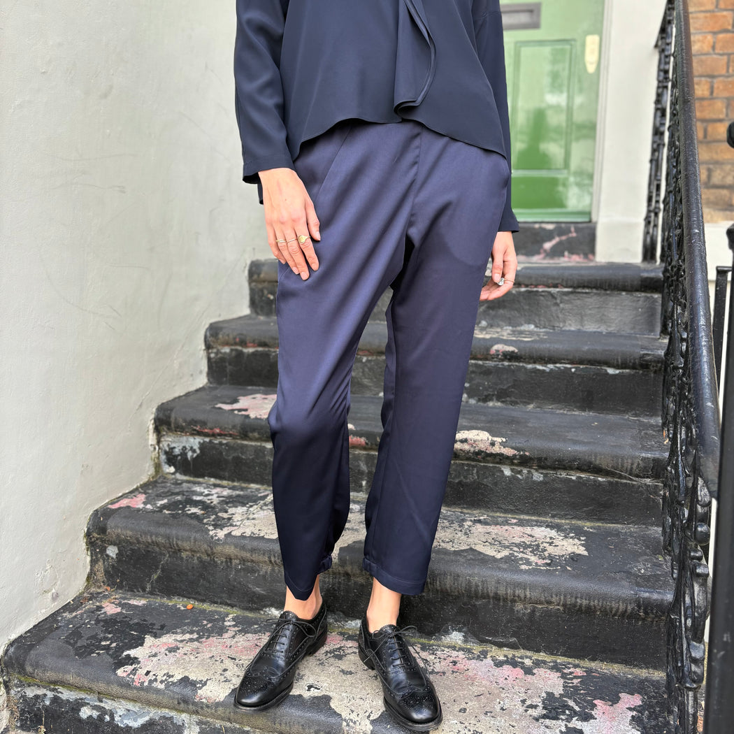 The best-selling Gabi Trousers in recycled drape feature hidden pockets on a curved front seam and an elastic detail at the back of the cuff. It has an elasticated waist and slips on.