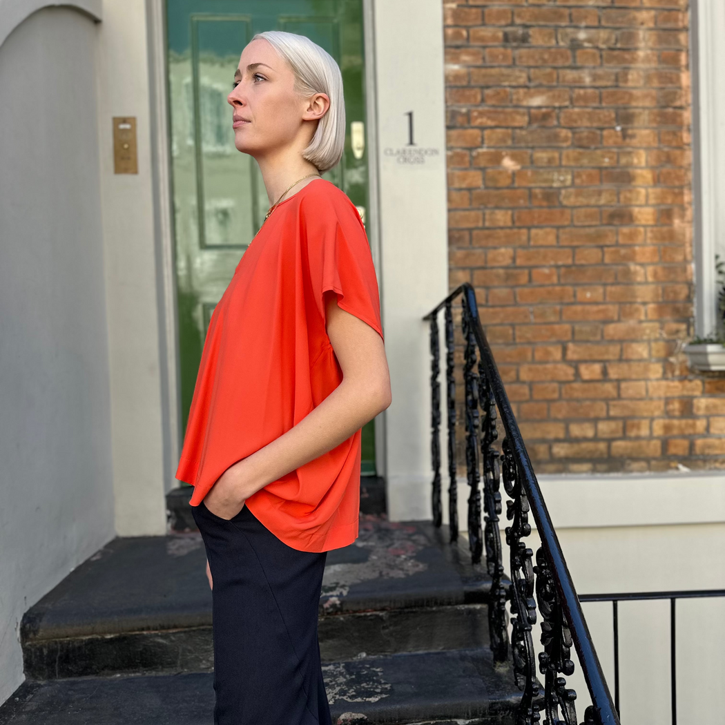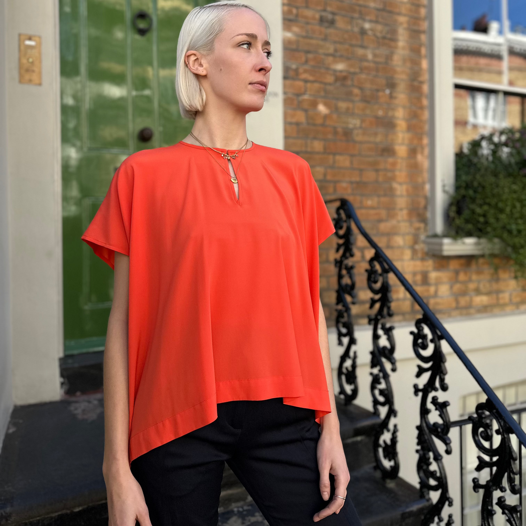 Zero Rae Persimmon Orange Poncho Silk Top