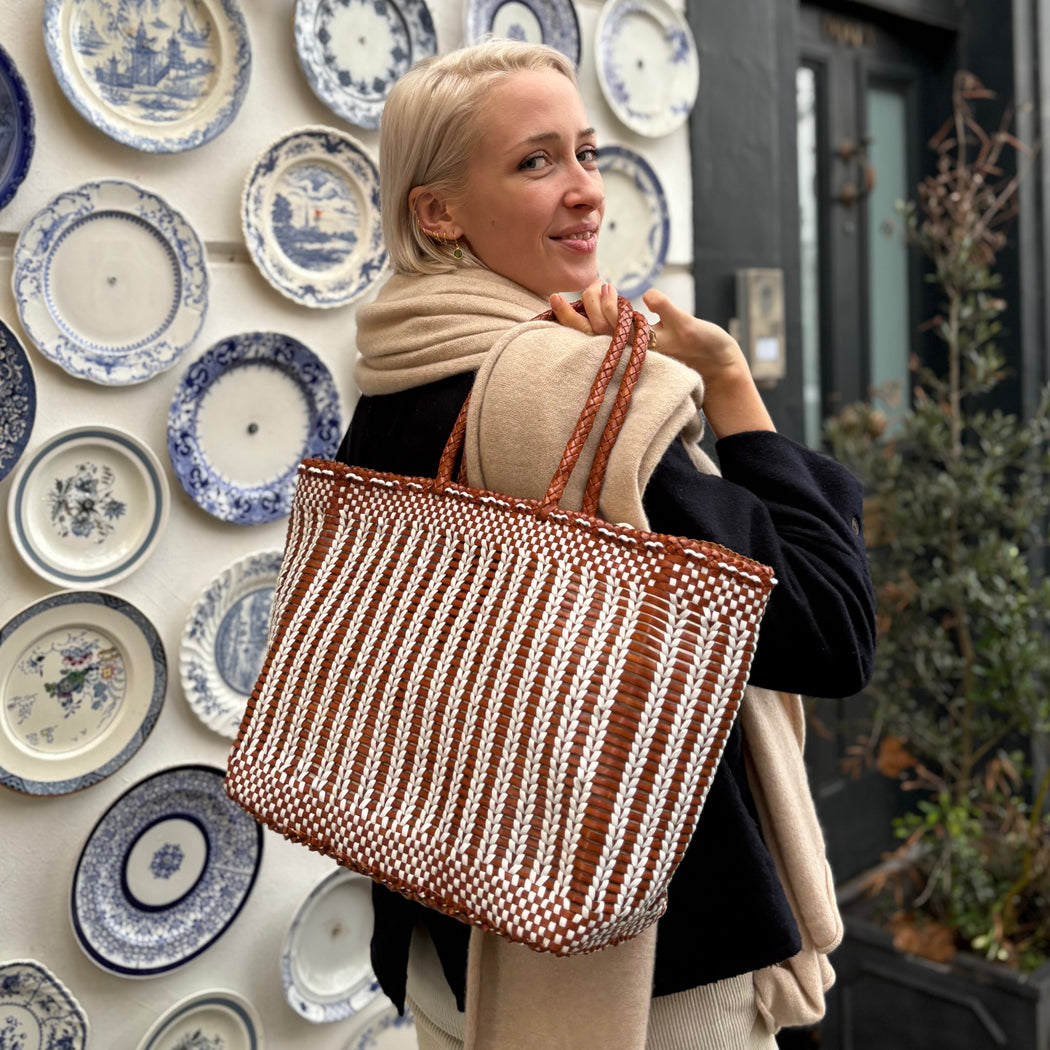 Dragon Diffusion are a collective of artisan leather weavers, each bag crafted entirely from hand, so no two pieces are alike, if you find a curve in the weaving or two-tone shade, this is due to Dragon Diffusion's unique process. From the pragmatic intelligence of the craftsman-creator with an obsession for handwoven bags, usually made from vegetable fibres and used daily as practical carry bags in indigenous communities on islands, atolls and remote coastal areas - these basket bags can be found in almost all countries in the world.