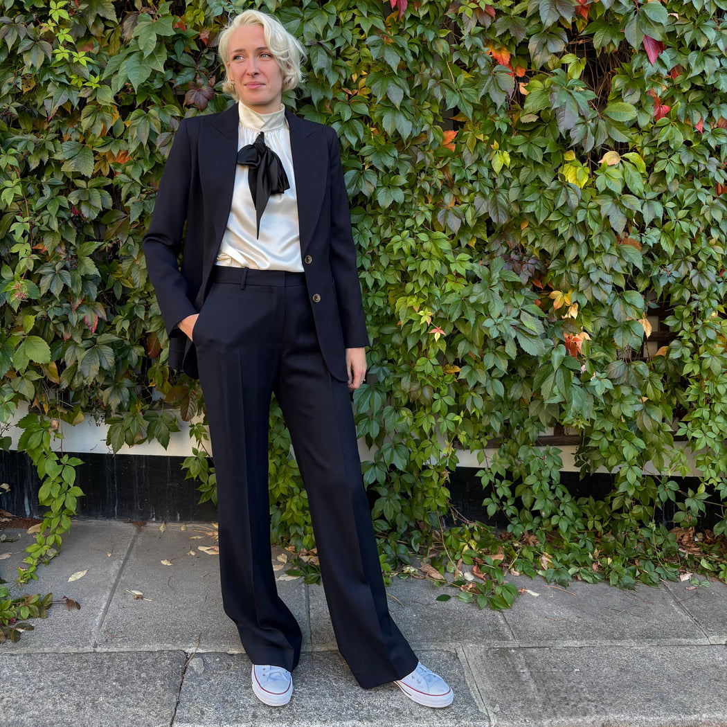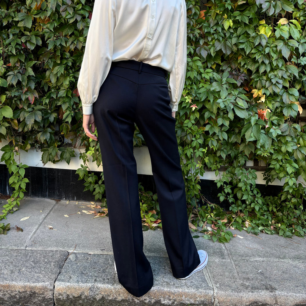 High rise British wool Cavalry Twill kick flare trouser homage David Bowie. Finished with side pockets.