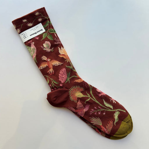 Bonne Maison Brown with Orange Pink Flowers Sock