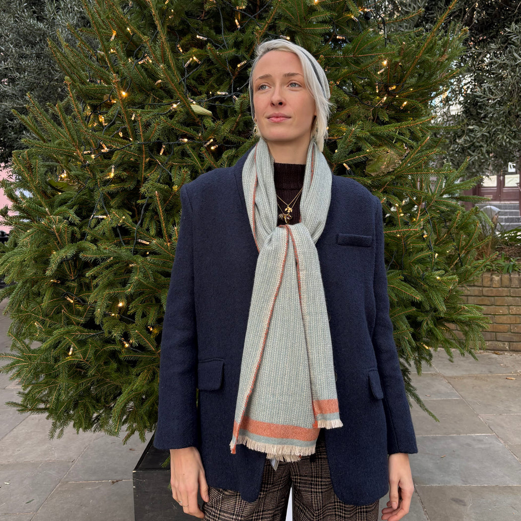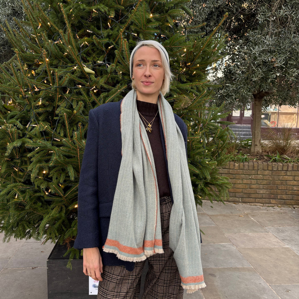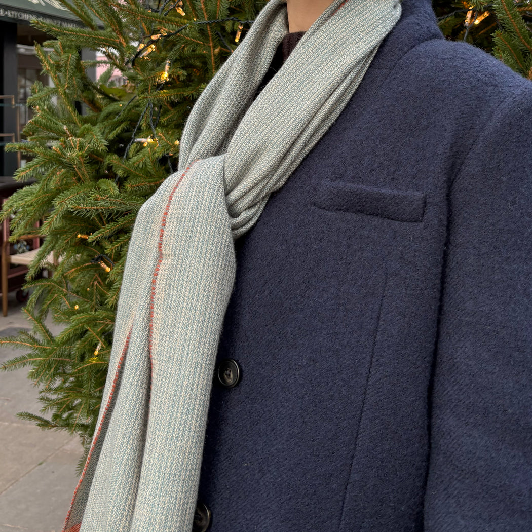 A beautiful two tone, textured scarf perfect for a man.