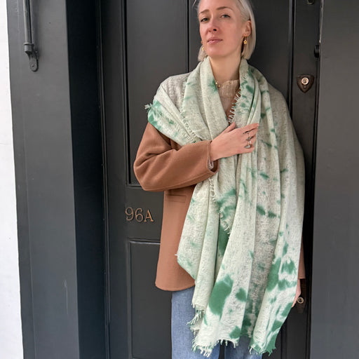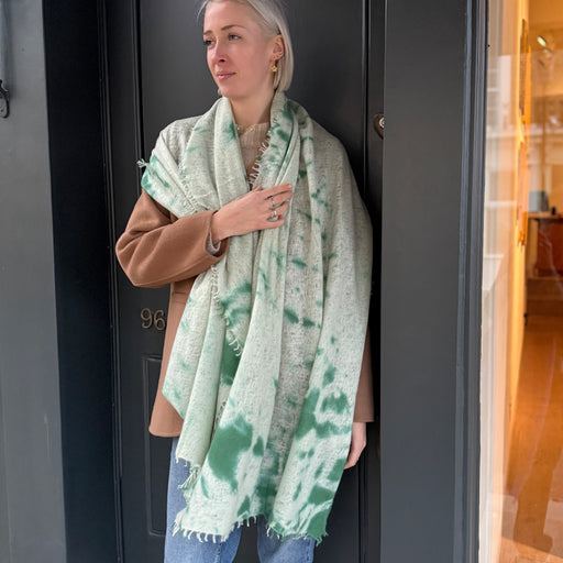 Mouleta Aqua & Elm Green Tie Dye Cashmere Scarf