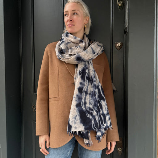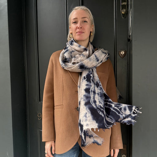 Mouleta Beige & Navy Tie Dye Cashmere Scarf