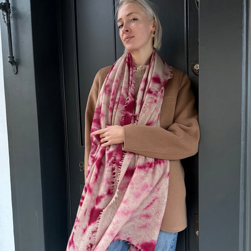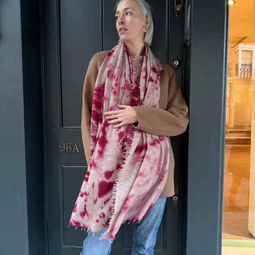 Mouleta Ivory & Beet Red Tie Dye Cashmere Scarf