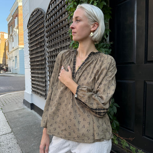 BSBEE Basita Khaki Black Floral Boho Top