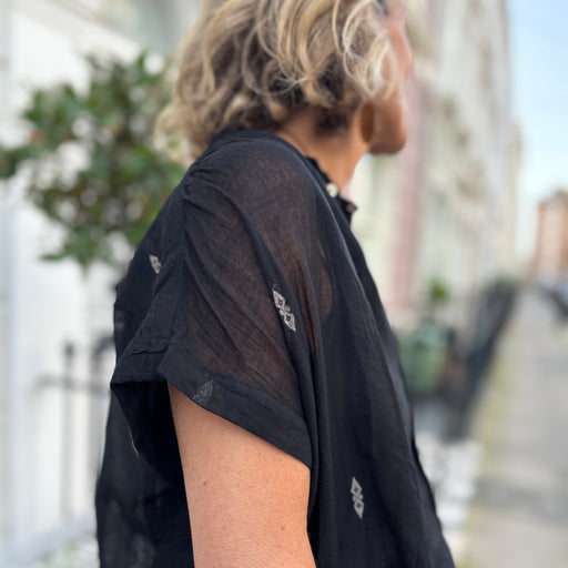 BSBEE Dayton Black Jamdani Cap Sleeve Shirt