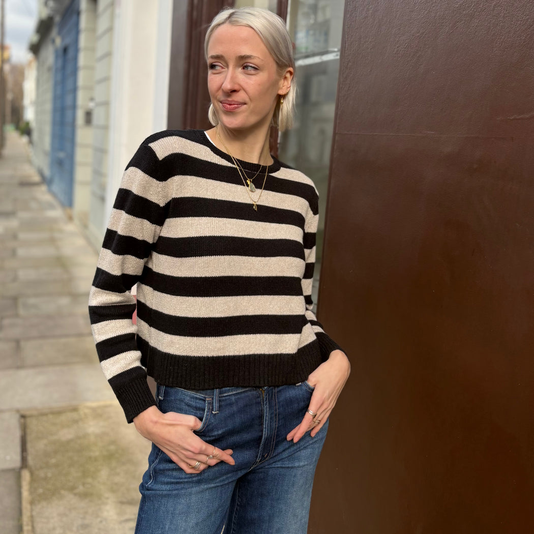 Cash-Ca Black and Oat Stripe Sweater