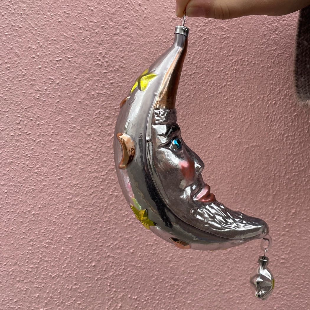 Large Crescent Moon Glass Ornament