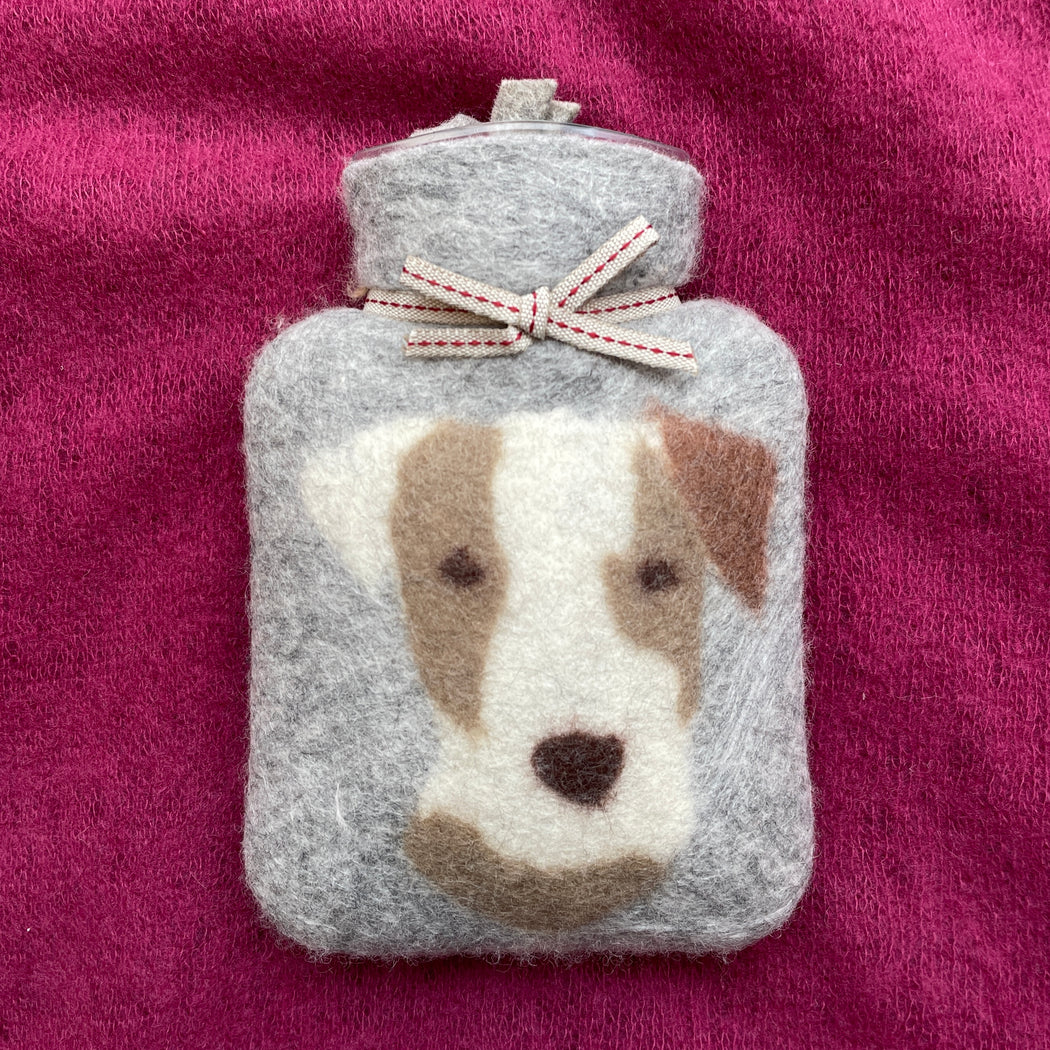 Dorothee Lehnen Jack Russel on Light Grey Mini Hot Water Bottle
