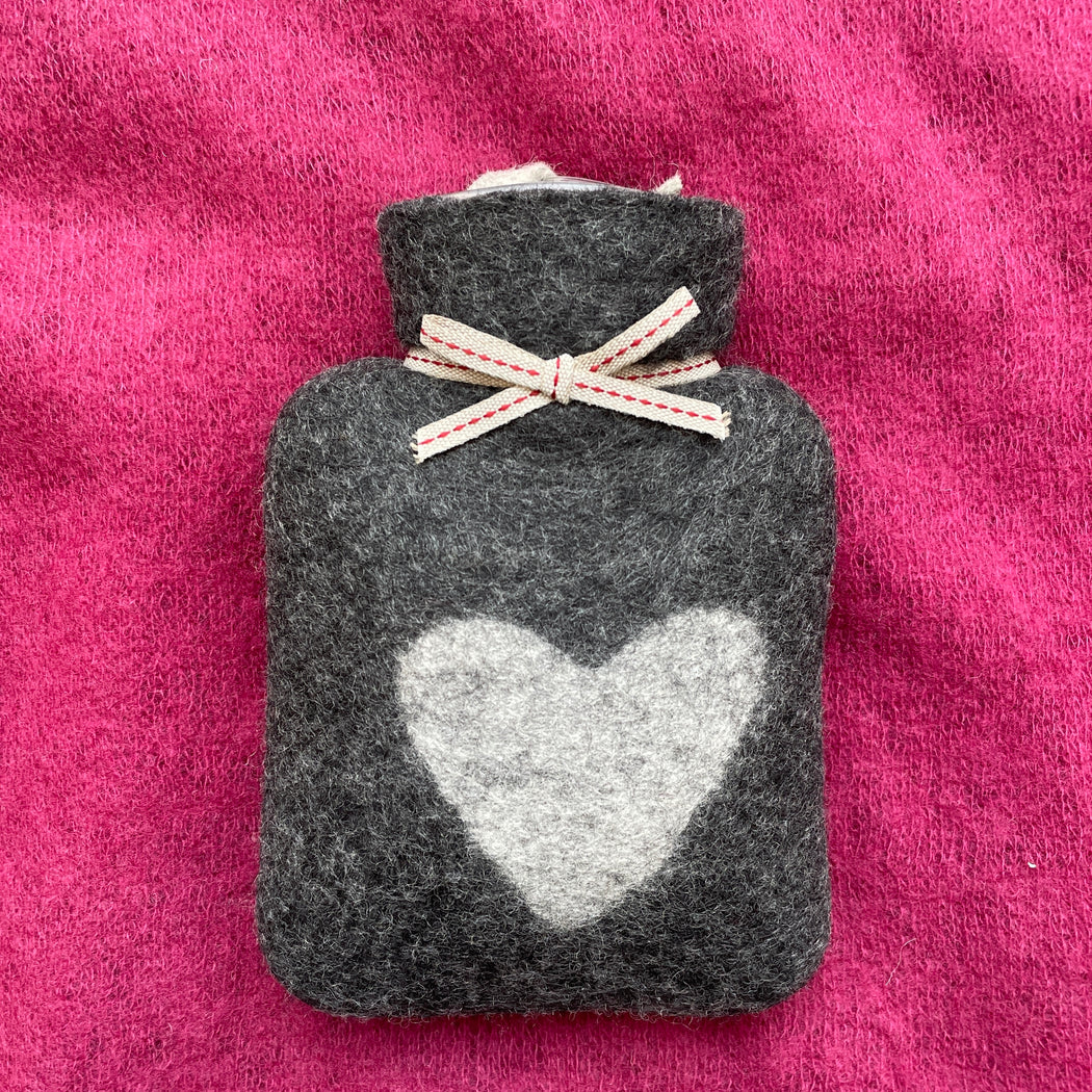 Dorothee Lehnen Light Grey Heart on Anthracite Mini Hot Water Bottle