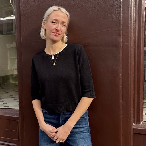 Cash-Ca Black 3/4 Sleeve Sweater