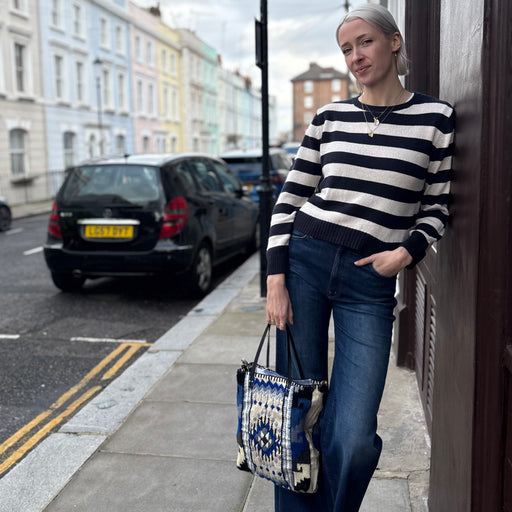 Cash-Ca Navy and Ecru Stripe Sweater
