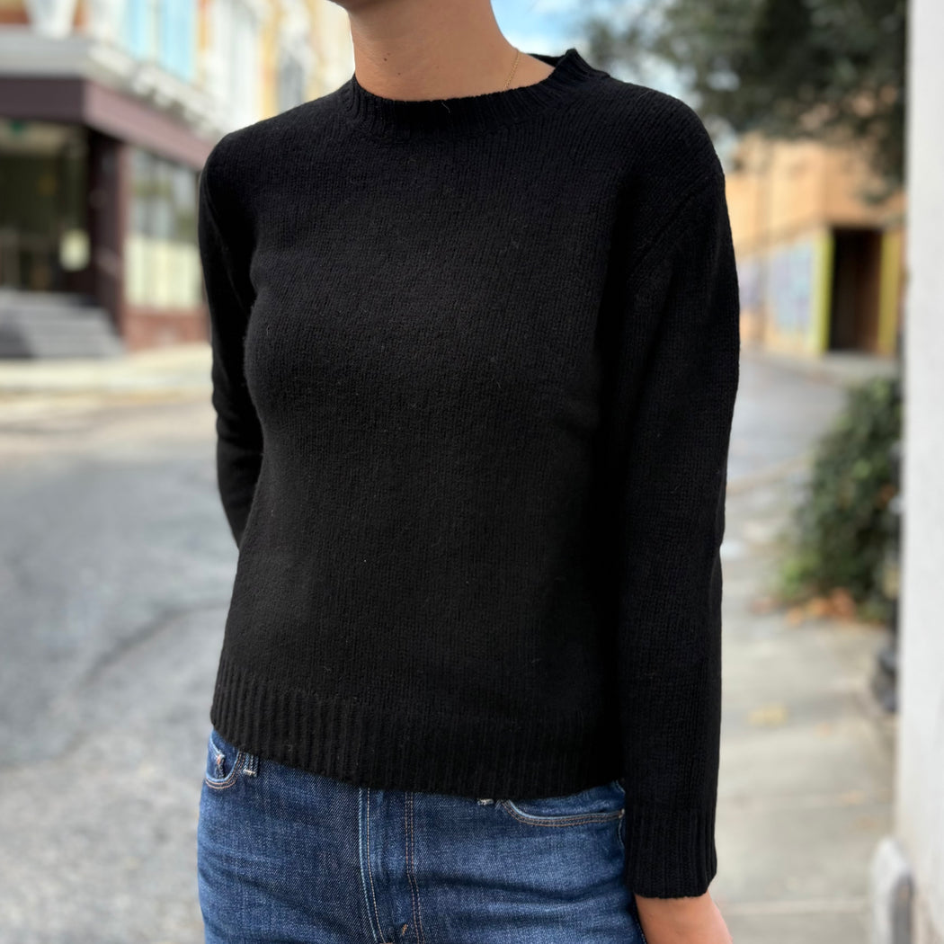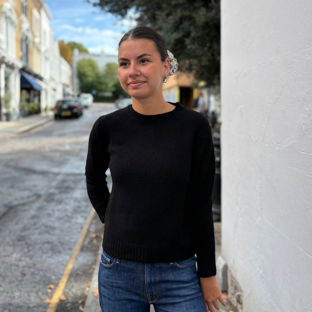 A classic crew jumper with a chunky knit in a yak and merino. The arms are slightly cropped with a neat fitted body. Fits true to size.