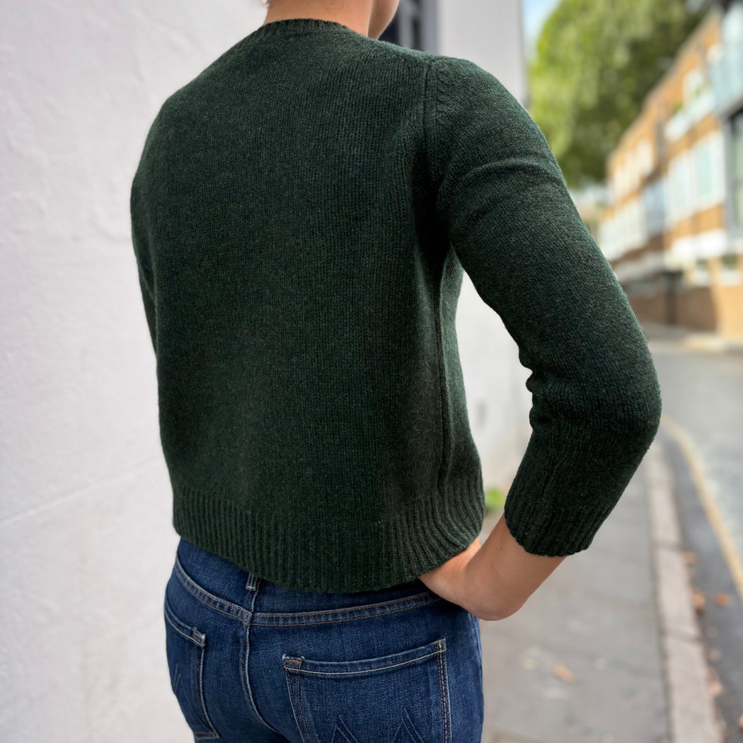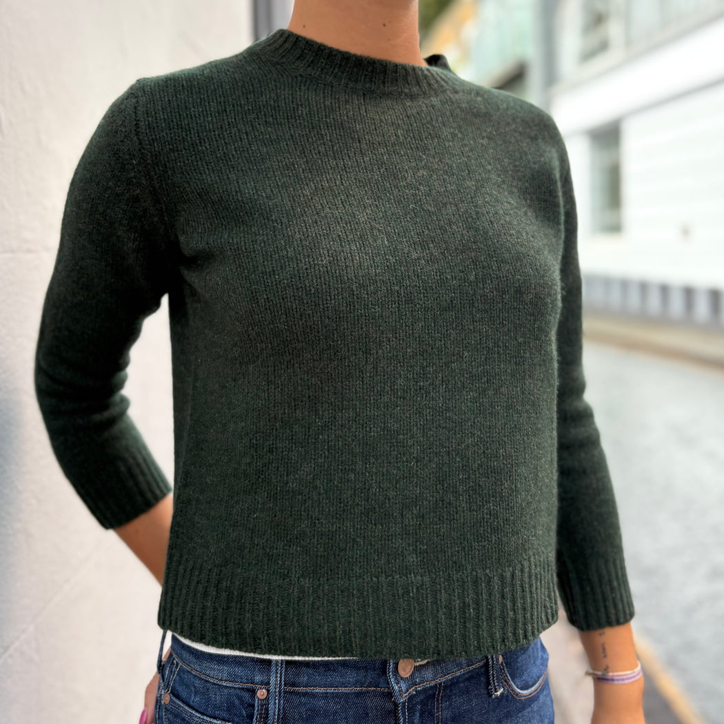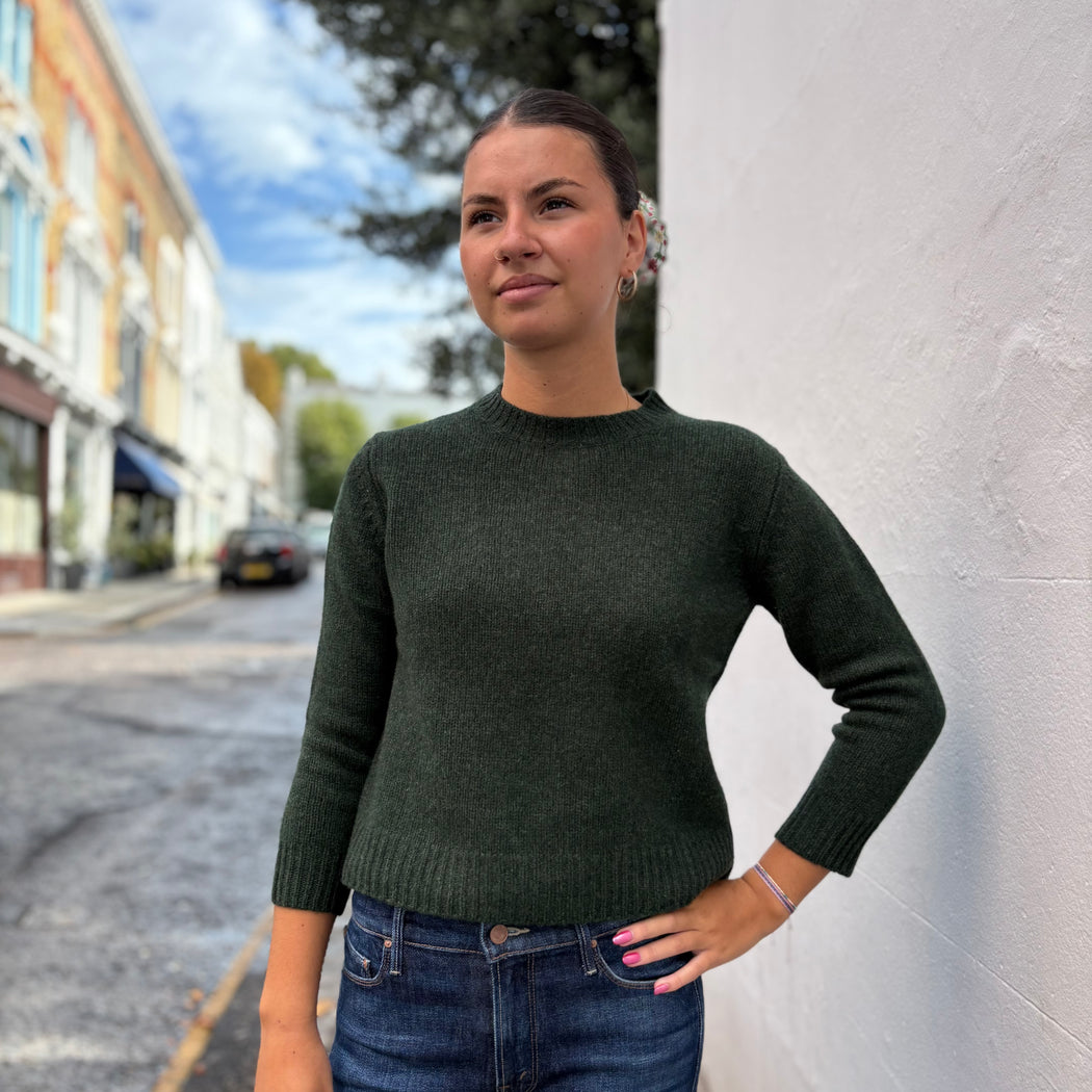 A classic crew jumper with a chunky knit in a yak and merino. The arms are slightly cropped with a neat fitted body. Fits true to size.