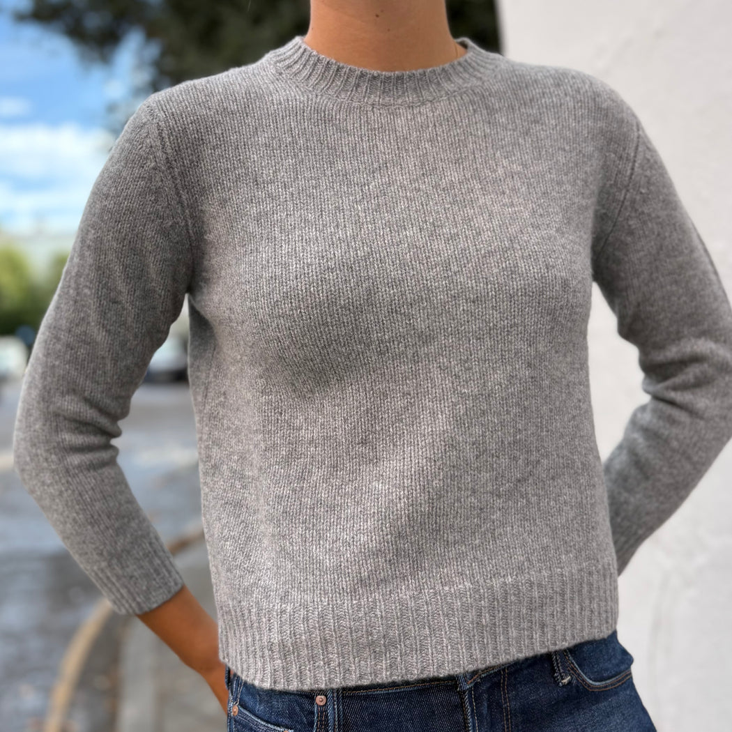 A classic crew jumper with a chunky knit in a yak and merino. The arms are slightly cropped with a neat fitted body. Fits true to size.
