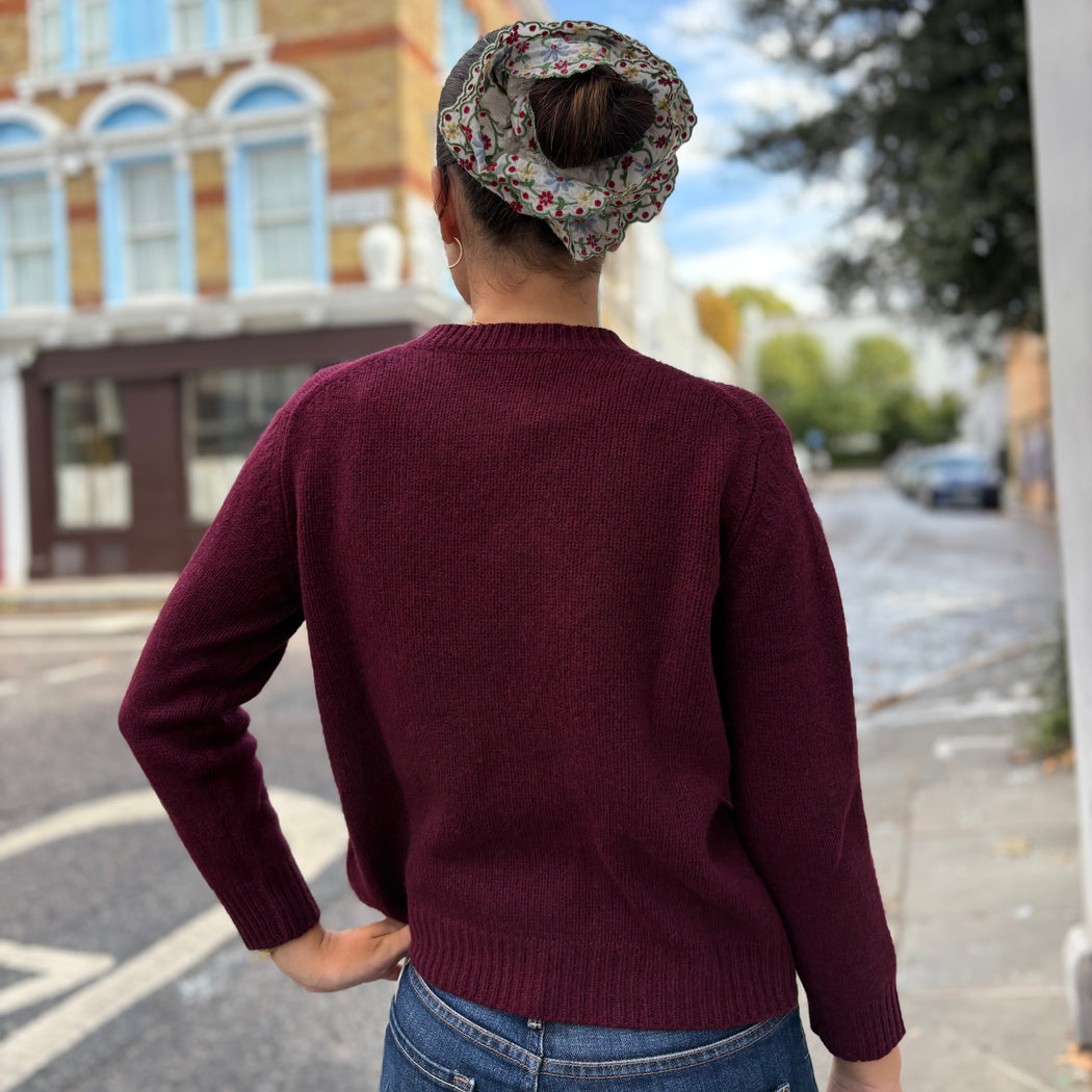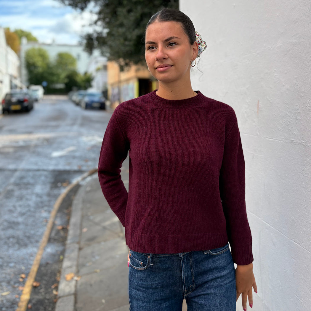 A classic crew jumper with a chunky knit in a yak and merino. The arms are slightly cropped with a neat fitted body. Fits true to size.