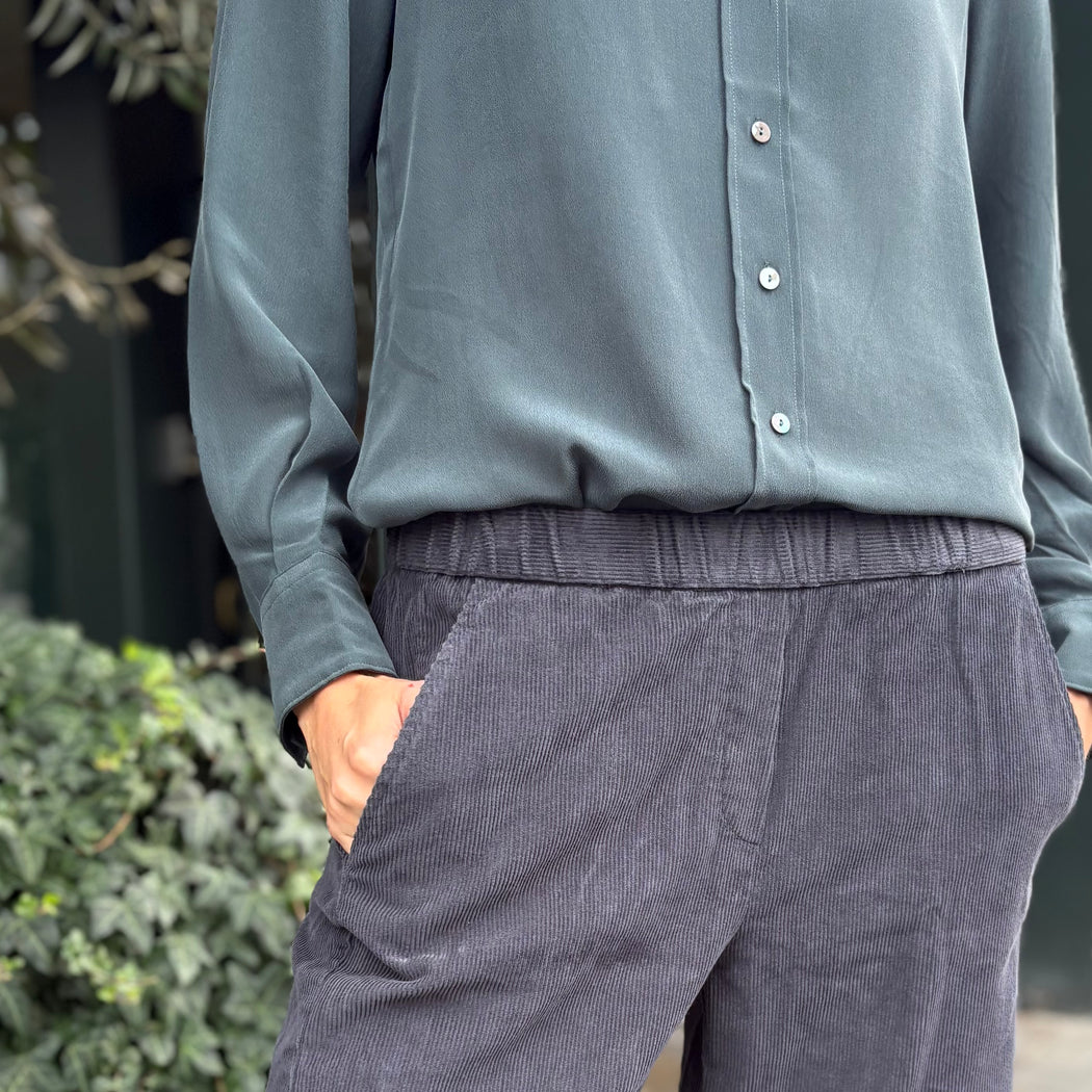 An easy to wear fine cord trouser, with an elasticated waist and slash pockets. These trousers will be your go-to pair. Comfy, stylish and very versatile.