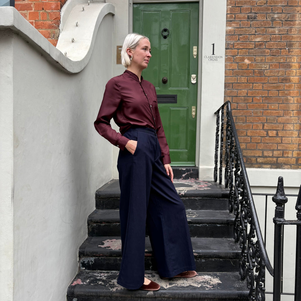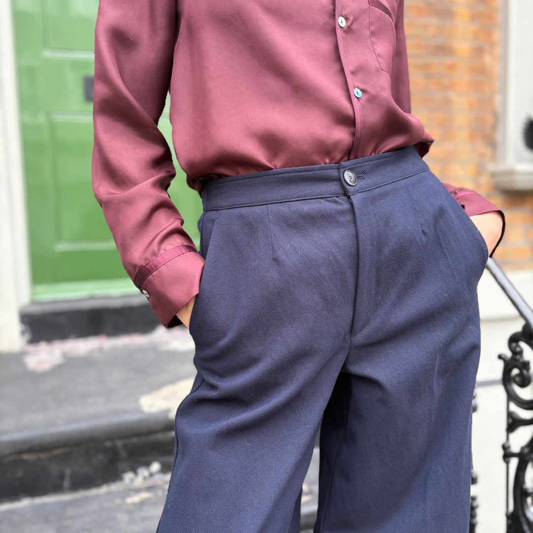 A refined cut, the trousers in wool–and–viscose twill have a touch of elegance. With a fluid drape, classic button zip closure, side pockets.