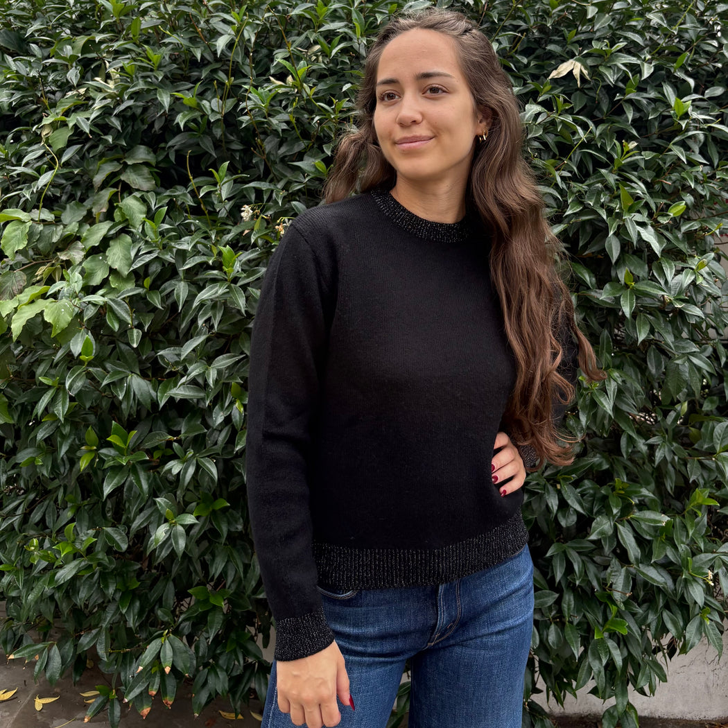 Jumper 1234 Black and Silver Lurex Contract Crew Sweater