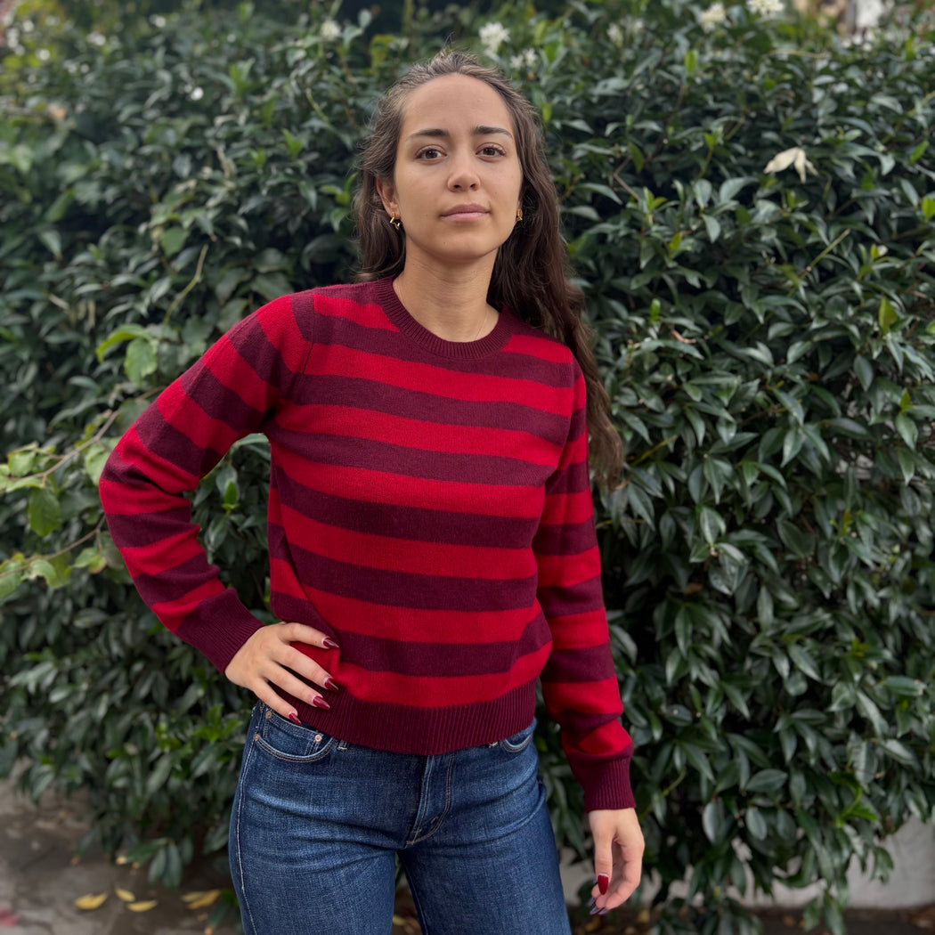Jumper 1234 Burgundy and Red Stripe Crew Sweater