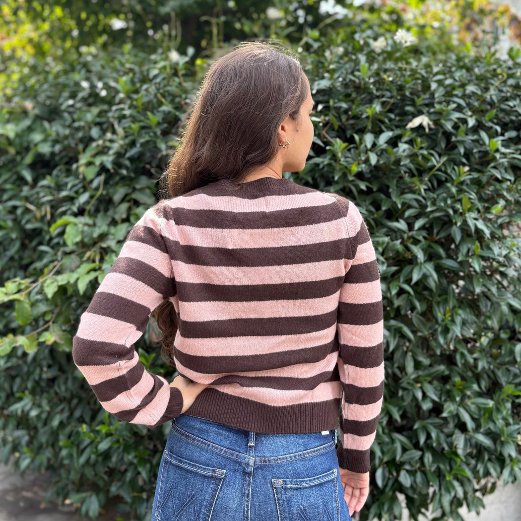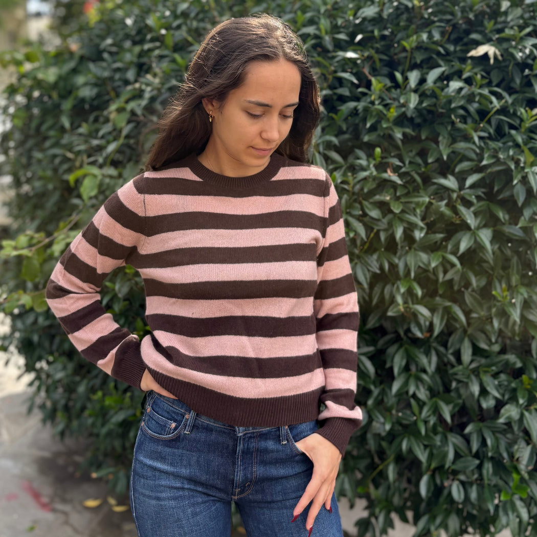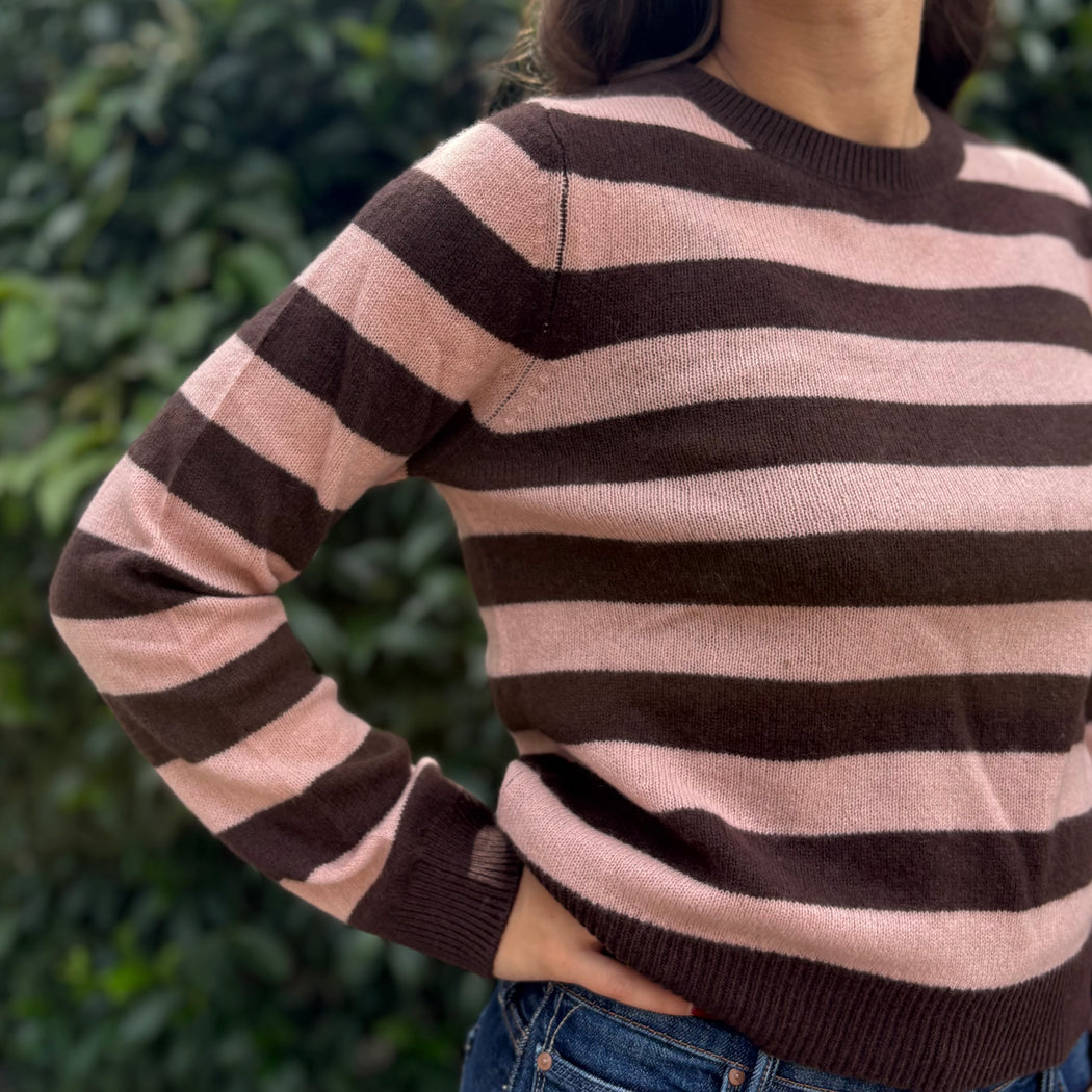 Jumper 1234 Chocolate and Pink Stripe Crew Sweater