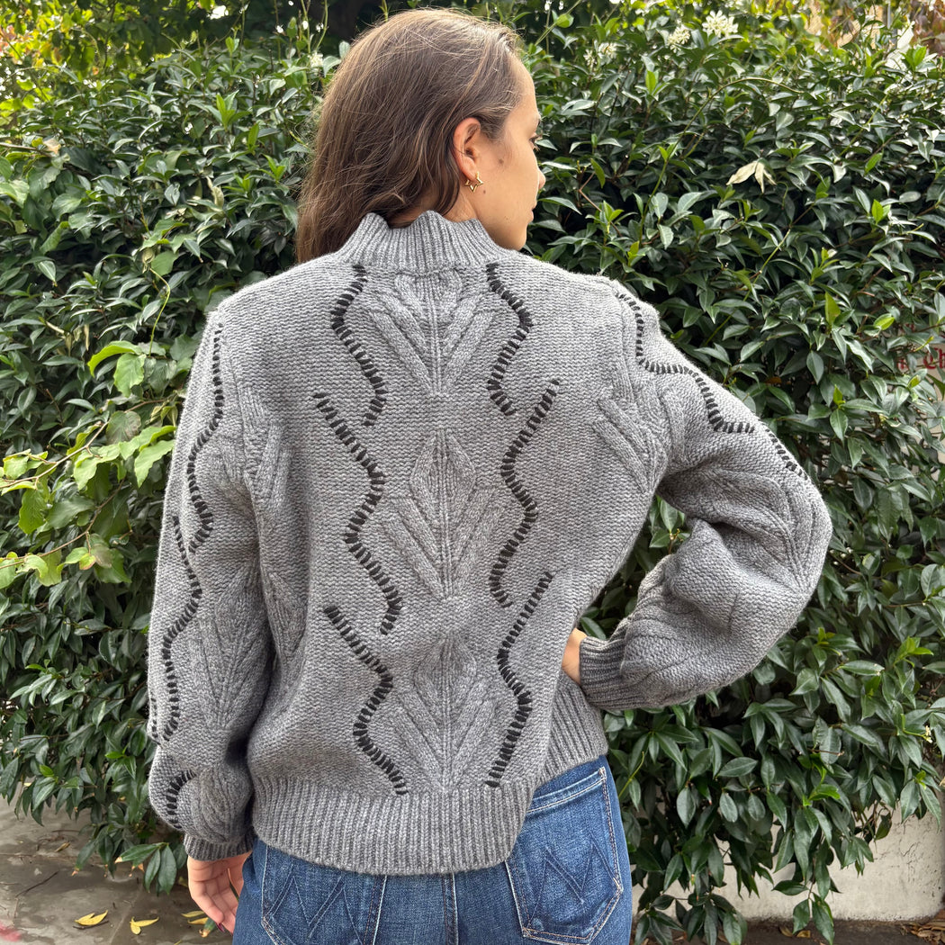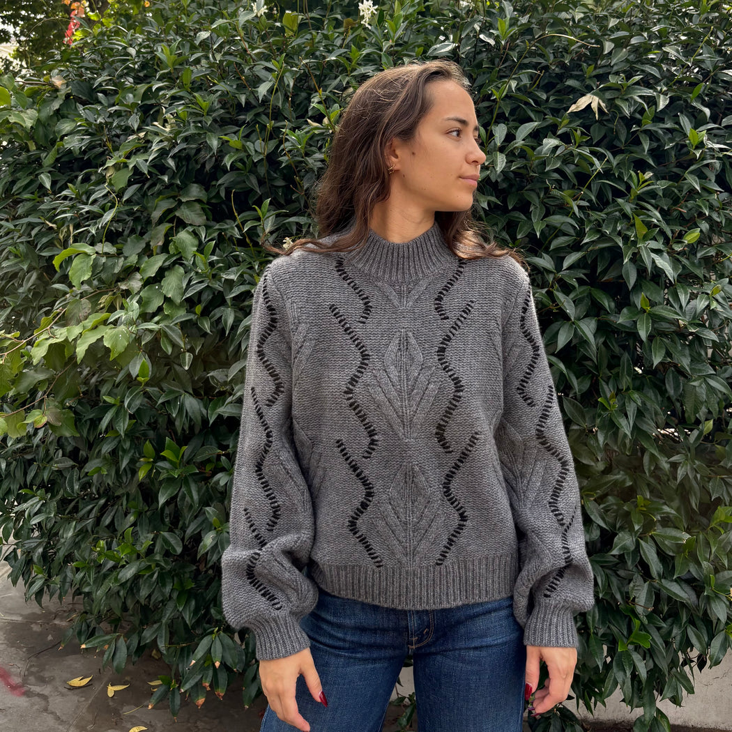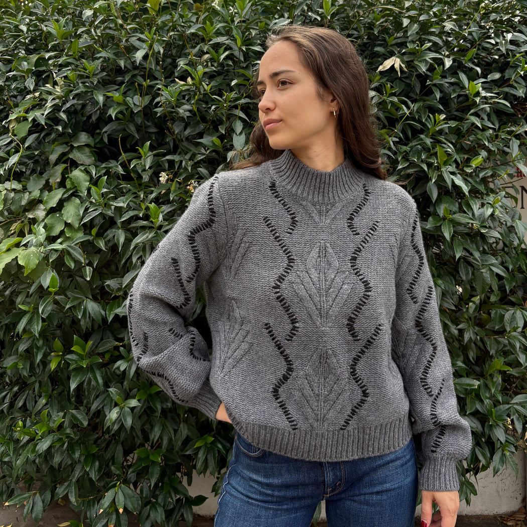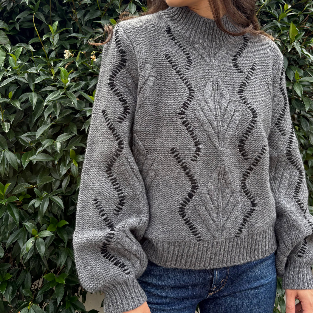 Jumper 1234 Iron Grey and Black Overstitched Cable Sweater