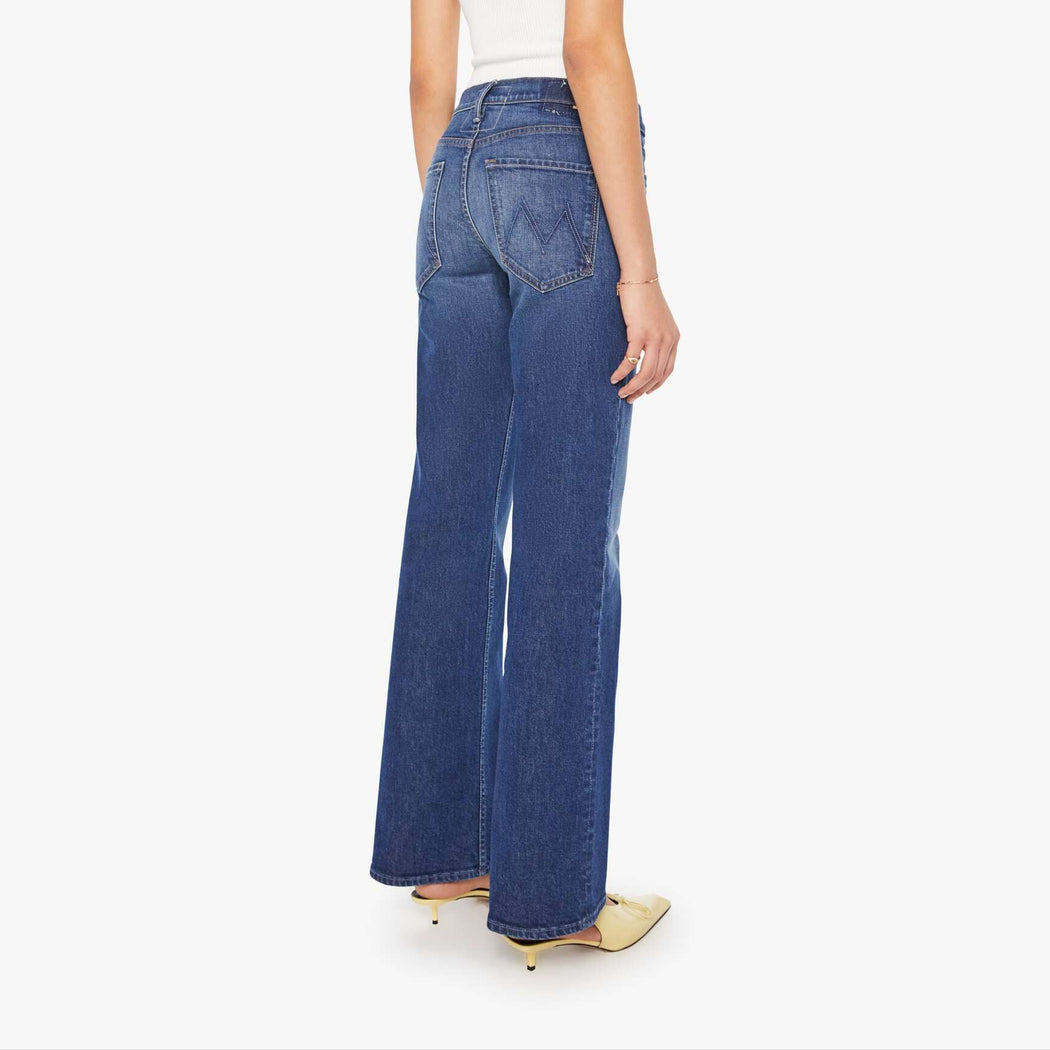 A high-rise bootcut with a zip fly, looser leg and a long 32-inch inseam with a clean hem. Made from semi-rigid SUPERIOR denim, Perfectly Imperfect is a dark blue with whiskering and fading at the knees.